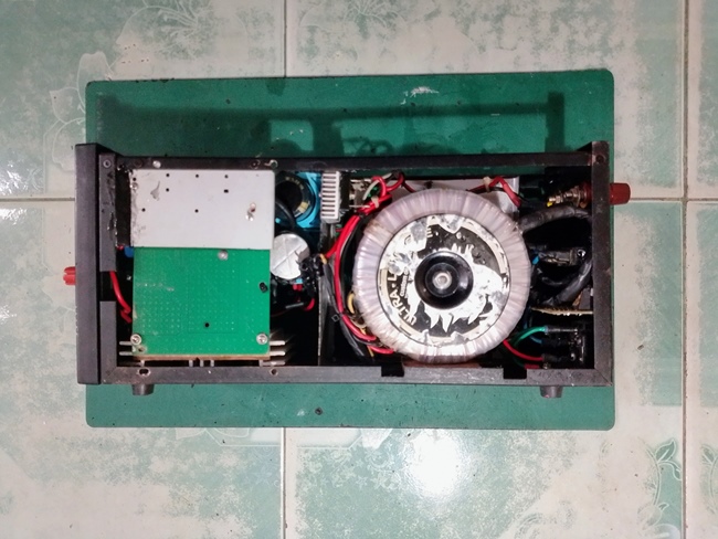 ตอนนี้ตอนนี้เครื่องขยายเสียงของผมพังไปแล้วก็เลยนำหม้อแปลงลูกนี้มาเป็นภาคจ่ายไฟเอนกประสงค์ตามรูป โดยนำไปใส่ในเคสของ UPS เก่าเปิดใช้งานทั้งวันตัวที่ร้อนที่สุดคือบริดไดโอด รองลงมาเป็นฮีตซิงค์และขดลวดของวงจรบั๊คคอนเวอร์เตอร์ หม้อแปลงแค่อุ่นๆ แทบจะไม่ร้อนเลย