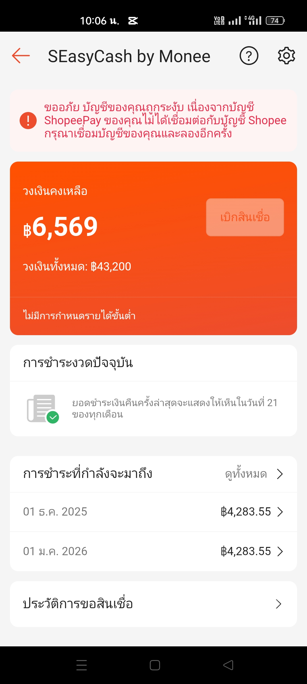 เรายืนยันตัวตนผ่านแล้วข้อมูลทุกอย่างครบแต่ทำไม SPayLaterและSEasyCash กลับขึ้นว่า "ขณะนี้คุณไม่สามารถชำระเงินด้วย SPayLater ได้เนื่องจากนโยบายบริษัทฯ กรุณาอัปเดตข้อมูลของคุณ" "ขออภัยบั