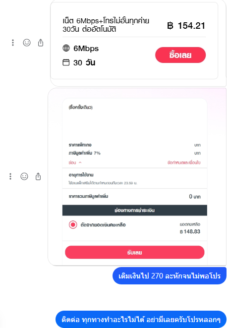 ตั้งใจเติมเงินเพื่อสมัครโปร กลวงๆ พอกดเสร็จ โปรหาย สมัครไม่ได้ แล้วจะโชว์หน้าเว็บทำไม
