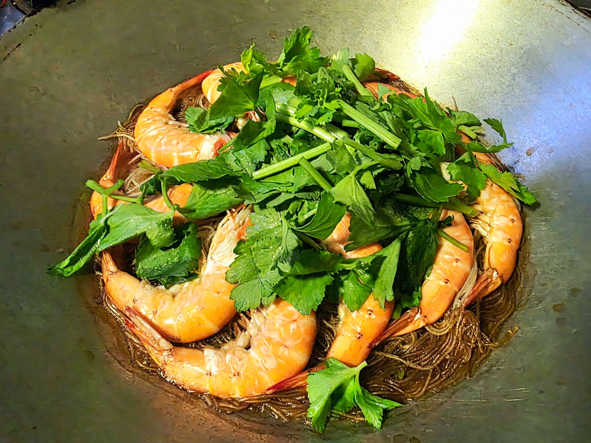 ครัวบ้านนาริมทุ่ง ; "กุ้งอบวุ้นเส้น ในกระทะ " 🦐🌿🌶️🧄🫚 ทำง่ายๆ แบบบ้านๆ ✌️🤤😋😃😄😁 🍽👍