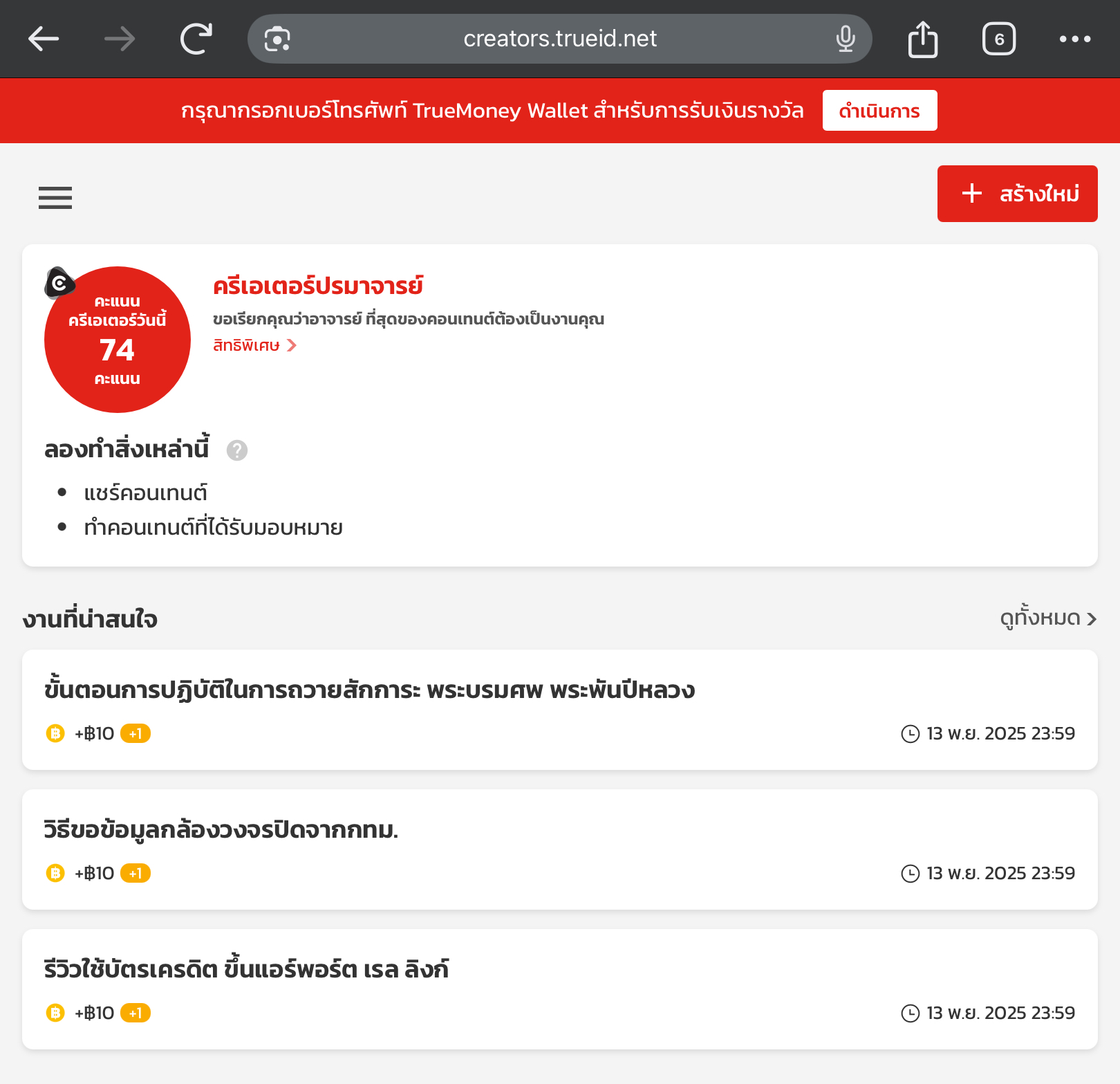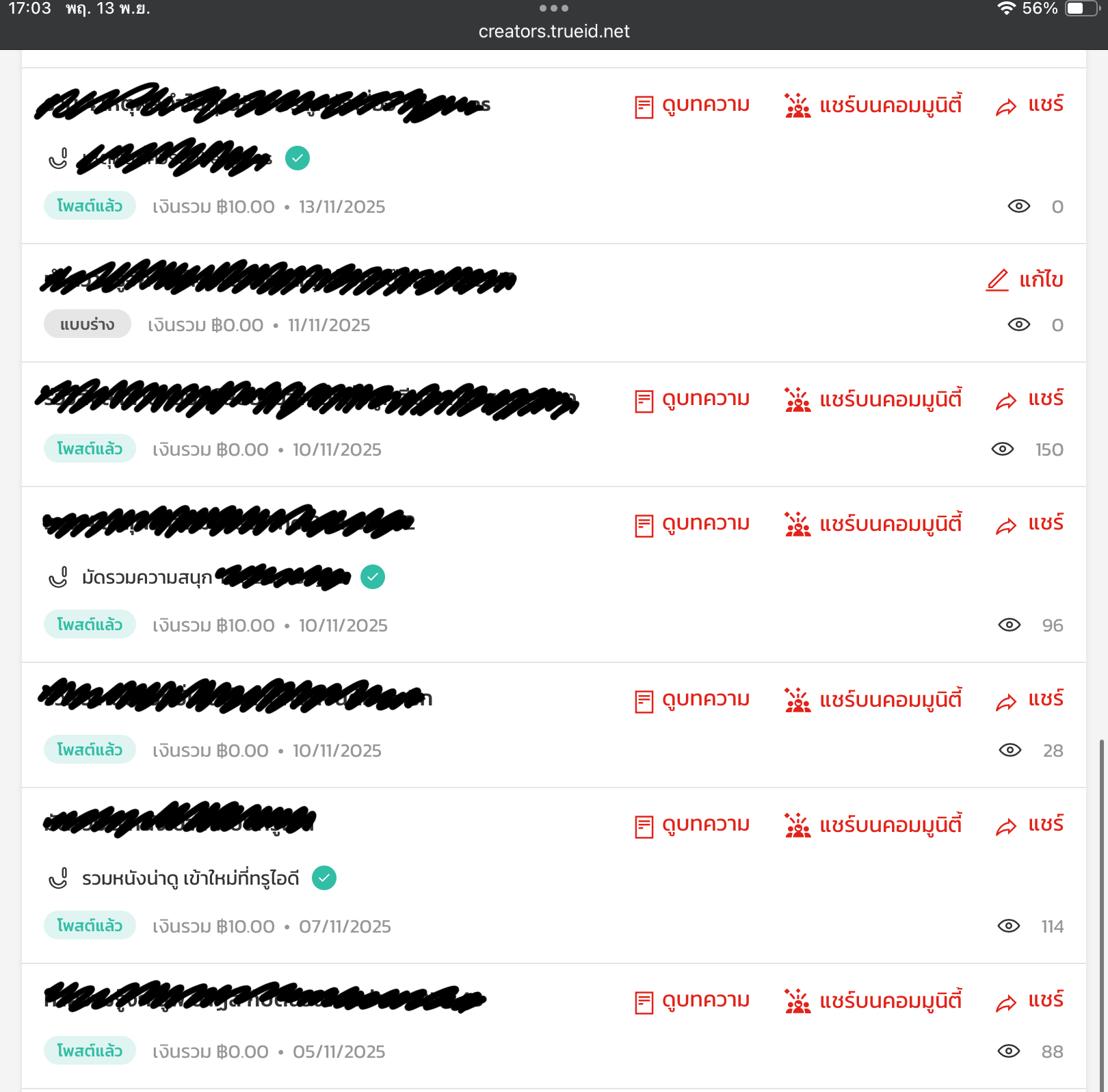 มีใครเจอปัญหา True ID creator ไม่คำนวนเงินค่าบทความที่ได้โพสต์บ้าง คือเข้าไม่จ่ายเงินให้แล้วหรอ งง?