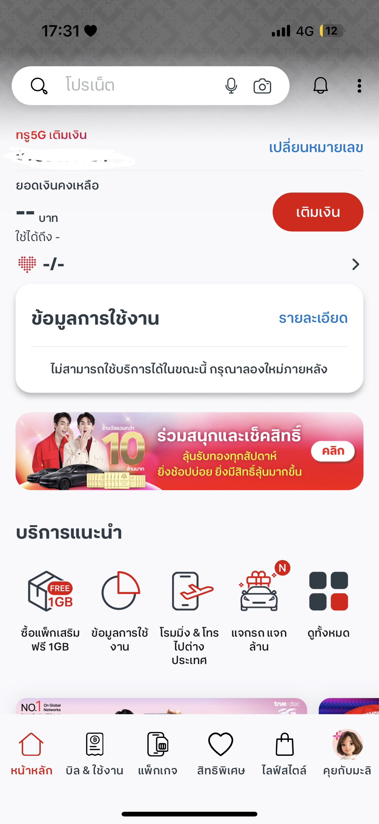 เบอร์ทรูแบบเติมเงินโดนยกเลิกเอง
