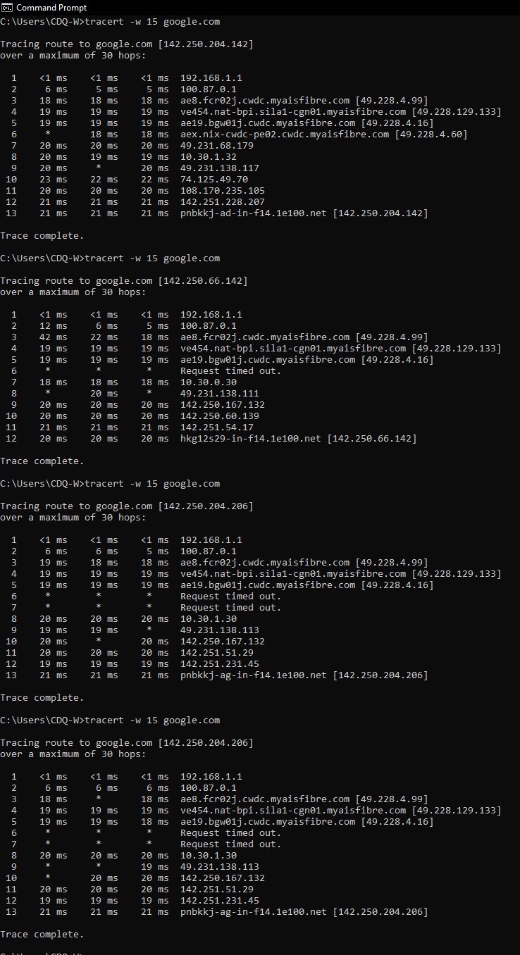 C:\Users\CDQ-W>tracert -w 15 google.com
