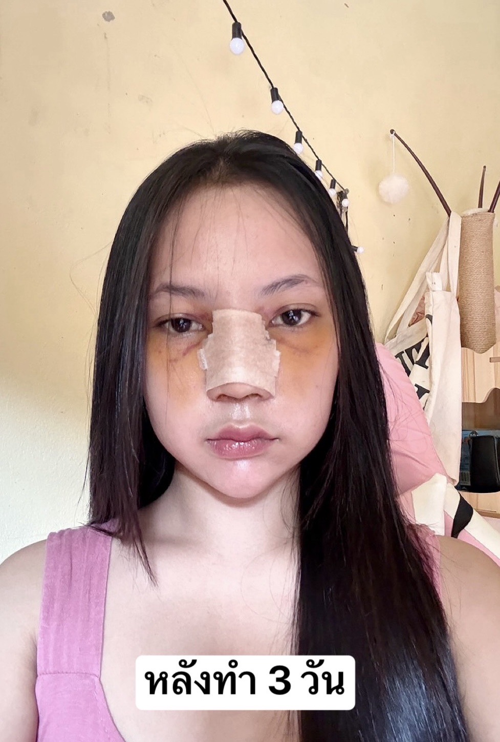 หลังเสริมจมูกวันที่ 20 ความบวมช้ำลดลงเรื่อยๆ