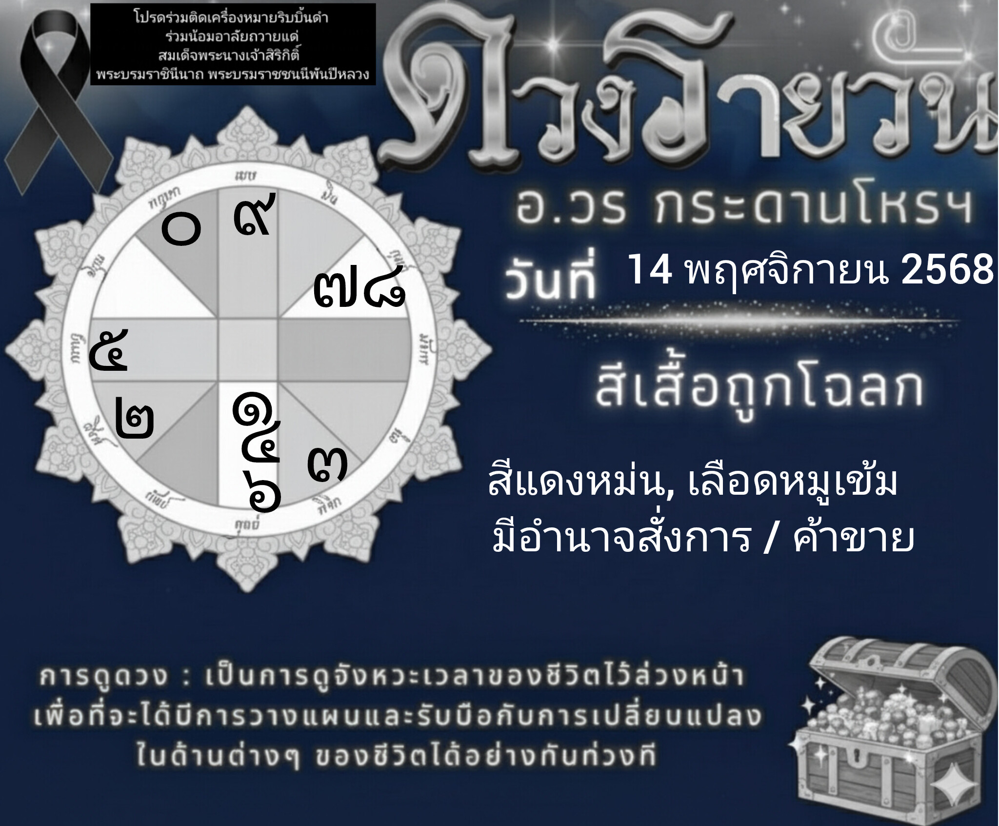 Ψ ☀ ดวงวันนี้ 14 พฤศจิกายน พ.ศ. 2568 โดย อ.วร กระดานโหรฯ ☀ 卐