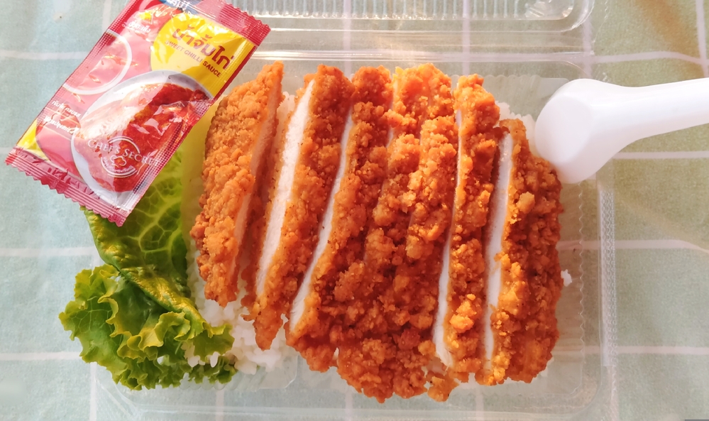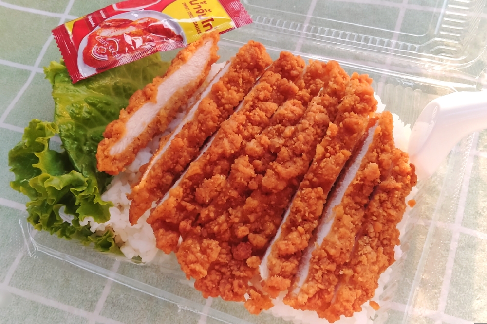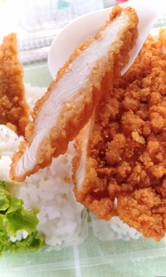ข้าวไก่ทอด + เค้กไข่ไต้หวัน 🐔🥚