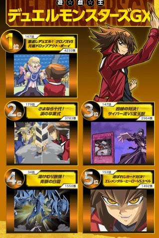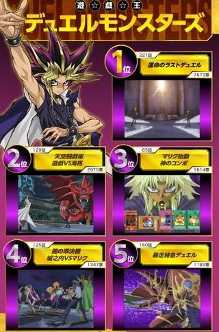 เมื่อต้นปี 2016 นิตยสาร V Jump ของสำนักพิมพ์ชูเอฉะ ได้ทำแบบสอบถามเหล่าแฟน ๆ ยูกิโอ ในประเทศญี่ปุ่นว่า “ฉากดูเอลที่ชื่นชอบ” ของพวกเขาในภาคหลักทั้ง 5 คือฉากดูเอลไหนบ้าง