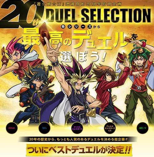 และการดูเอลเหล่านี้ก็ได้ถูกนำมาออกอากาศทางโทรทัศน์ในรายการ “Yu-Gi-Oh! 20th Selection” ทางช่อง TV Tokyo อีกด้วย