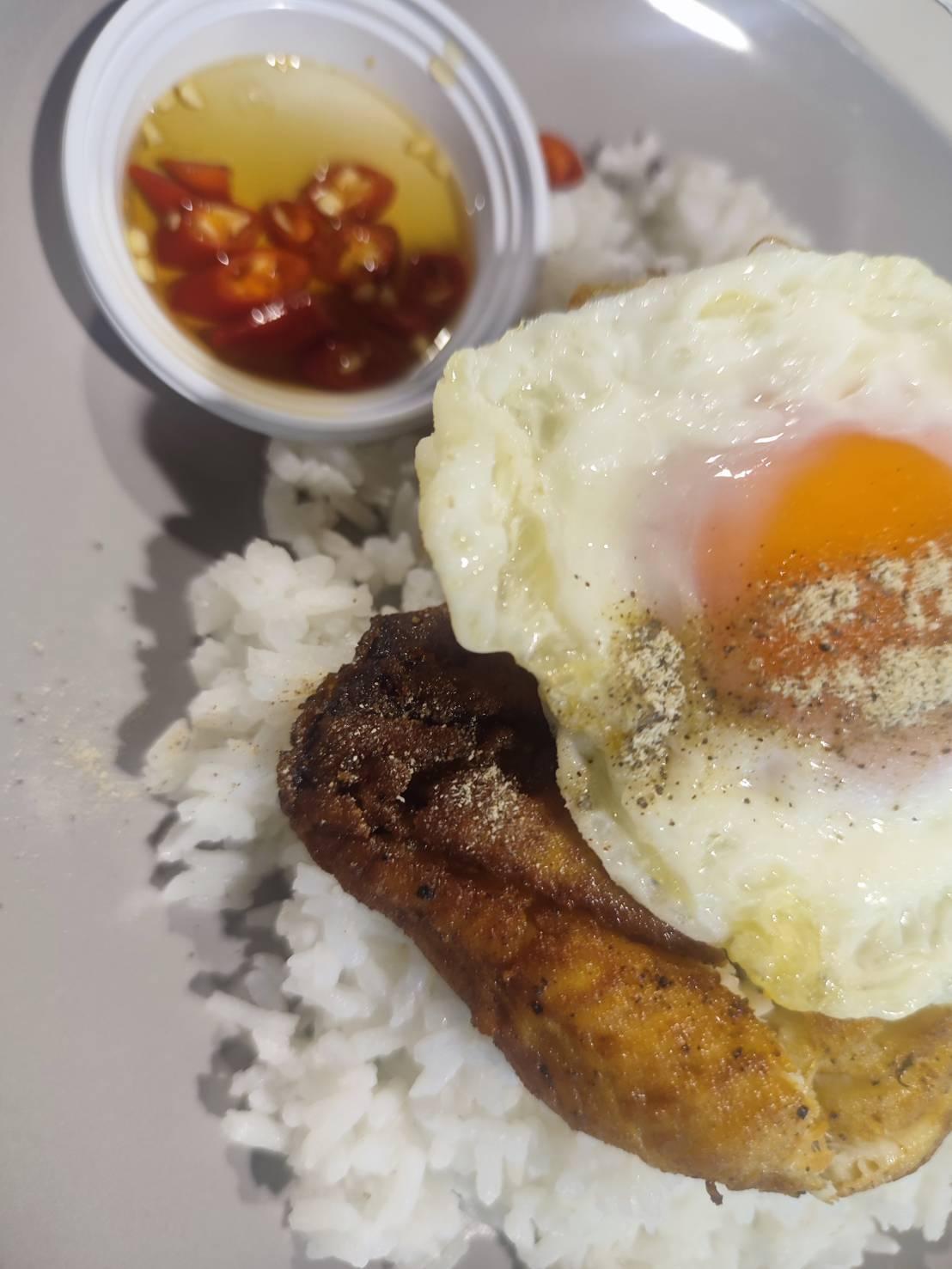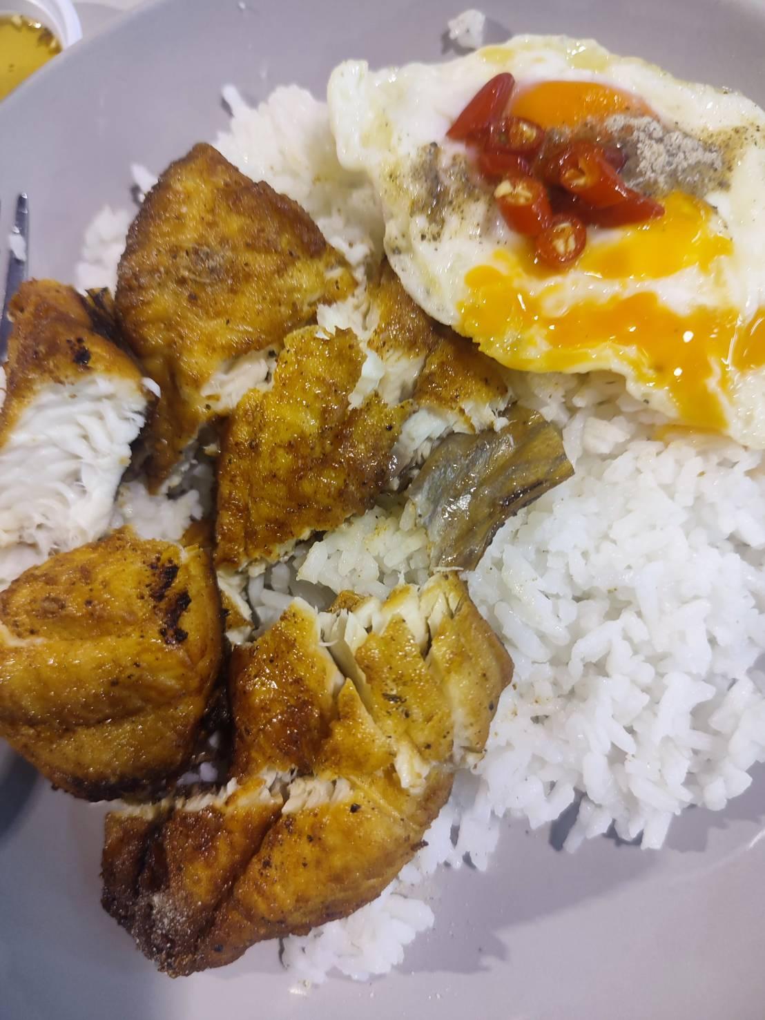 ตอนค่ำไปกินข้าวโรงอาหาร เด็กอย่างเยอะ กับข้าวเหลือบานเลย ครับ ข้าวหน้าปลาแกะ บวกไข่ดาว 55 บาท