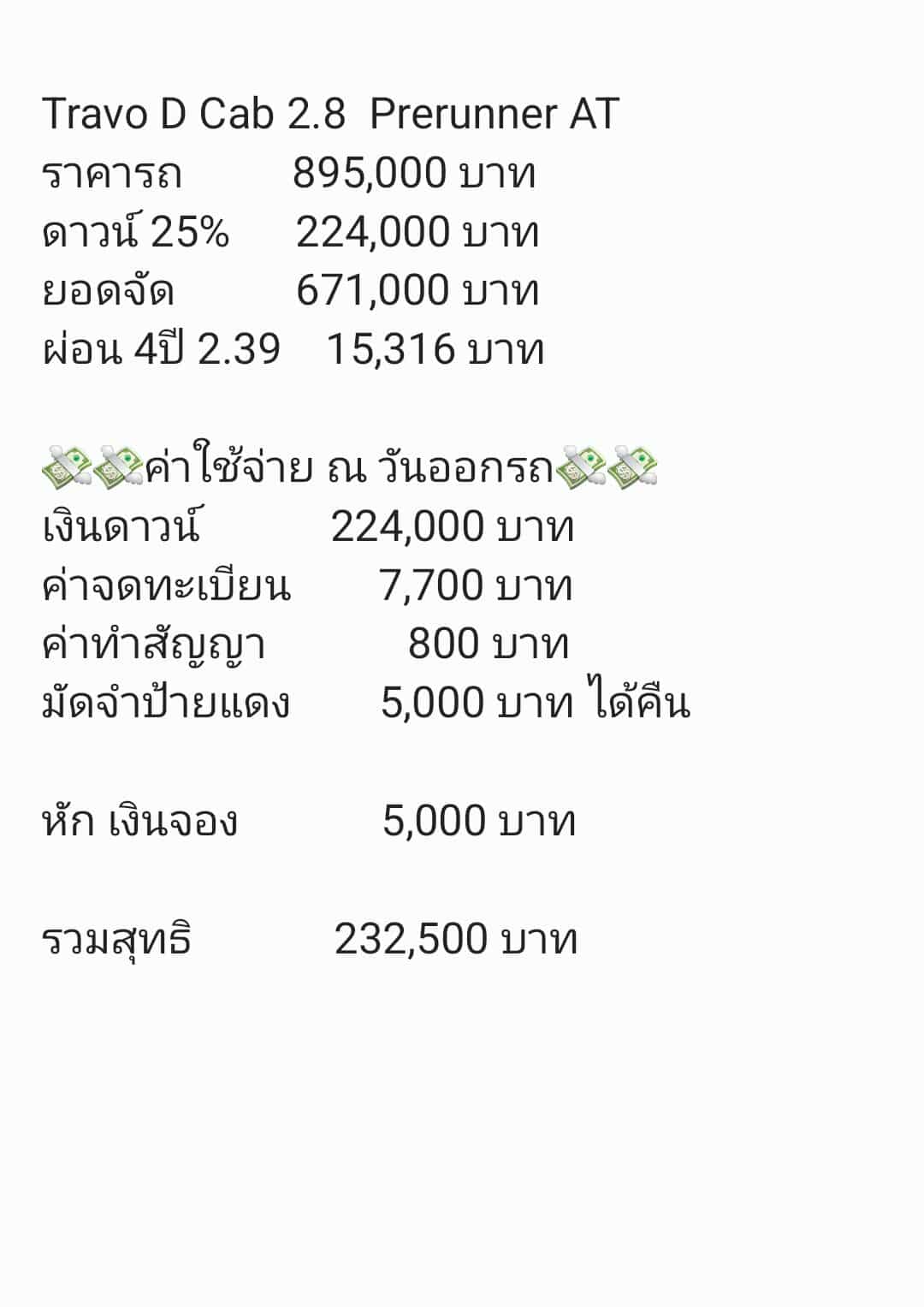 ผมจะออกรถ toyota revo 2021 double cab 2.4high mt สี dark grey metallic ทักหาเซลล์แล้วไปได้ใบเสนอราคามาประมาณนี้ มีใครได้ถูกกว่านี้แนะนำหน่อยครับ ราคารถ 976,000 บาท ส่วนลด 30,000 บาท ดาวน์ 200,000 บาท