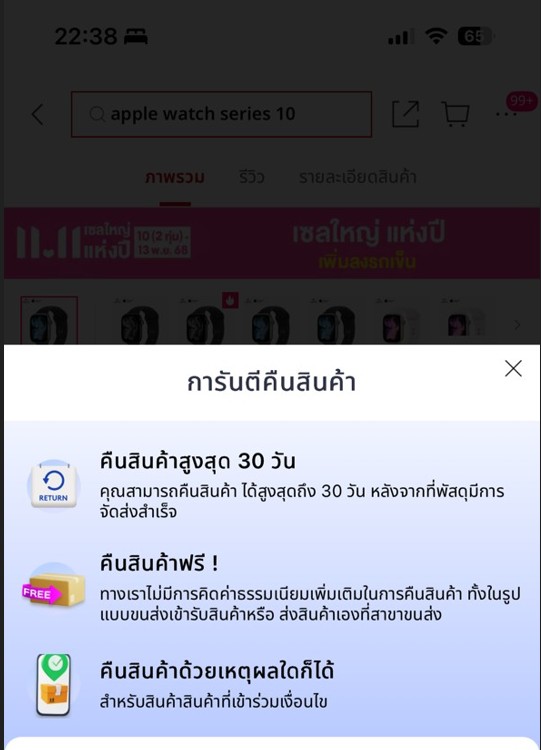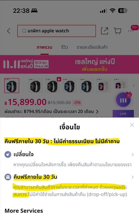 เราซื้อ Apple watch series 11 ด้วยโปร 10.10.2025 ในราคา 13,800 บาท จากร้าน Mall ของ Platform online เจ้าหนึ่ง (ร้าน Mall ของ Platform นั้นจะดำเนินการขายและบริหารโดย Platform นั้นเอง)