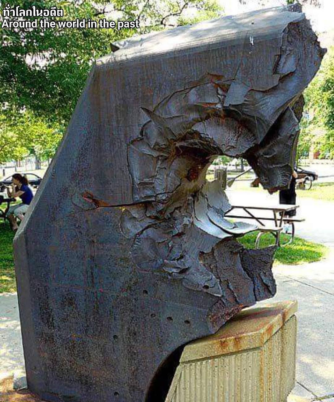 ภาพนี้แสดงชิ้นส่วนเกราะหนา 26 นิ้วจากเรือประจัญบานชั้นยามาโตะของญี่ปุ่น...🇯🇵 ซึ่งถูกยิงทะลุด้วยปืนใหญ่ขนาด 16 นิ้วของกองทัพเรือสหรัฐฯ...🇺🇸