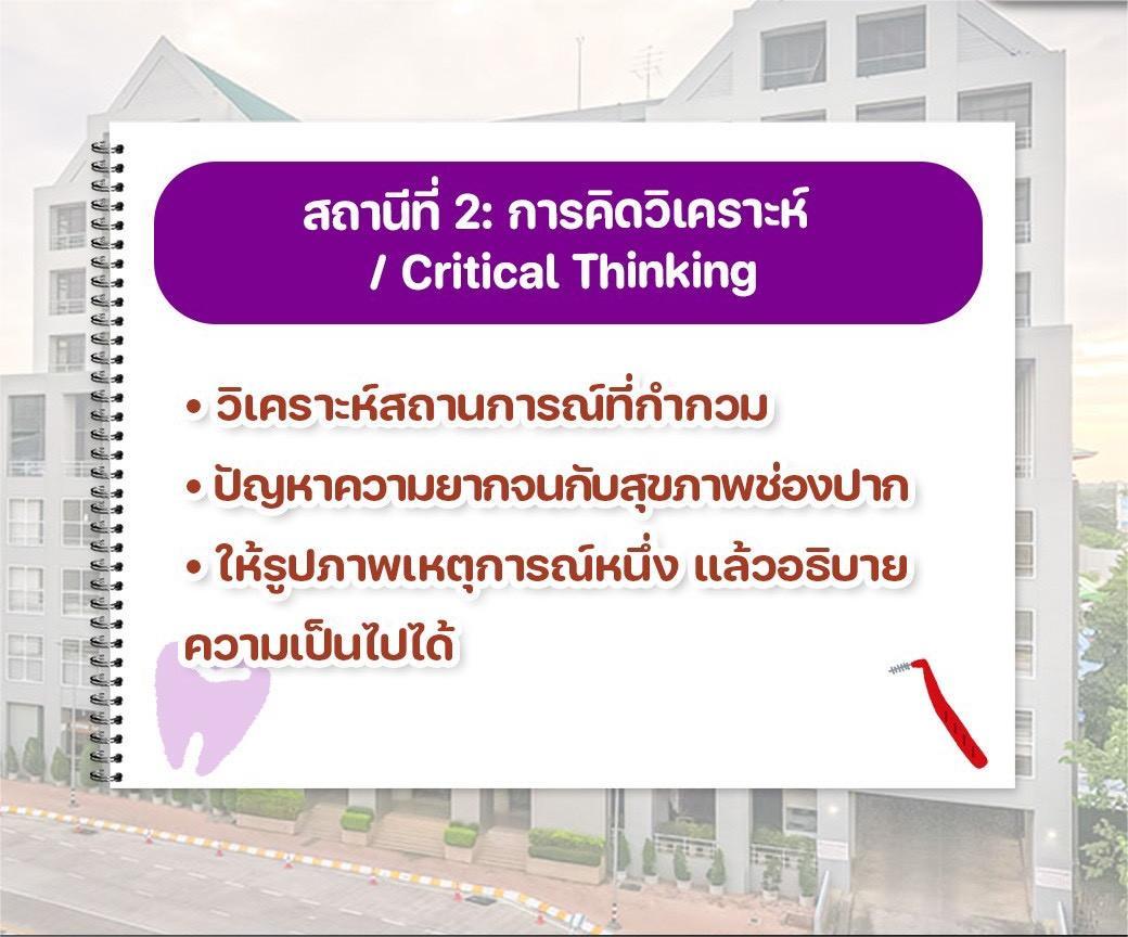 การคิดวิเคราะห์ (Critical Thinking): วิเคราะห์สถานการณ์ที่กำกวม หรือปัญหาความยากจนกับสุขภาพช่องปาก