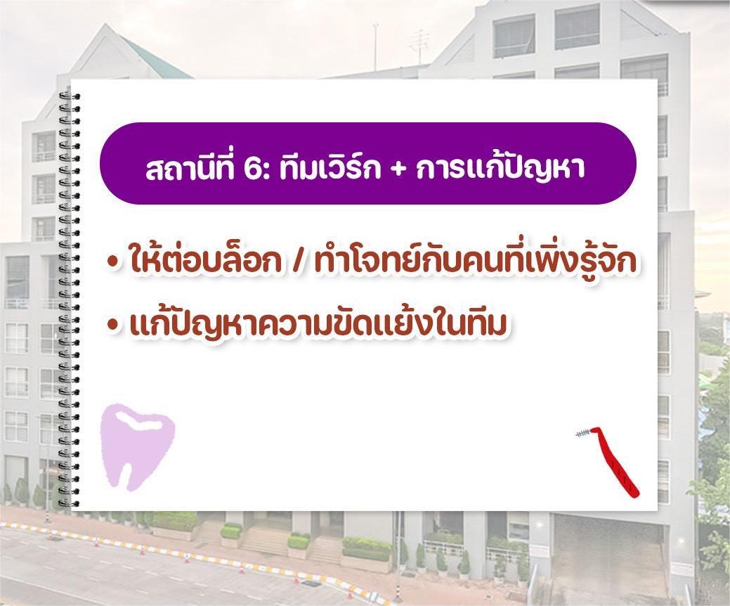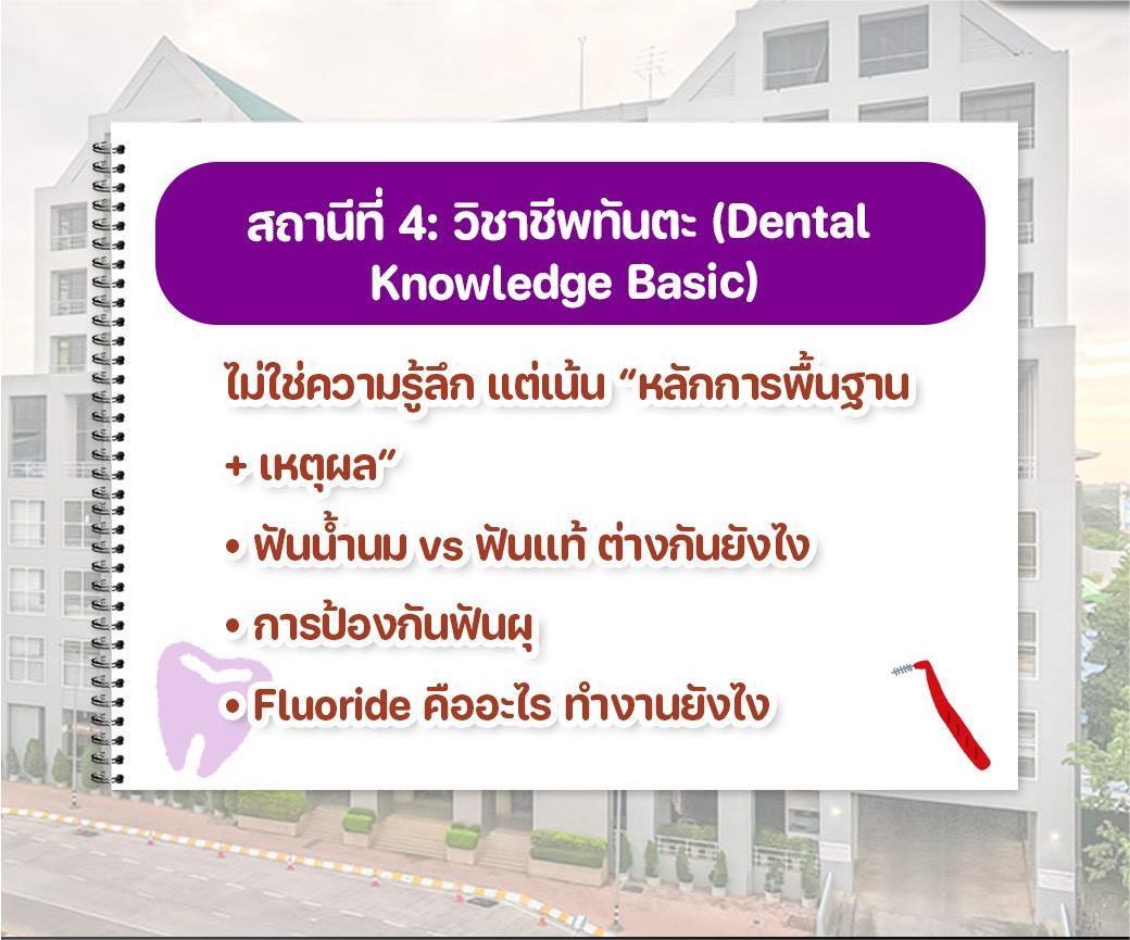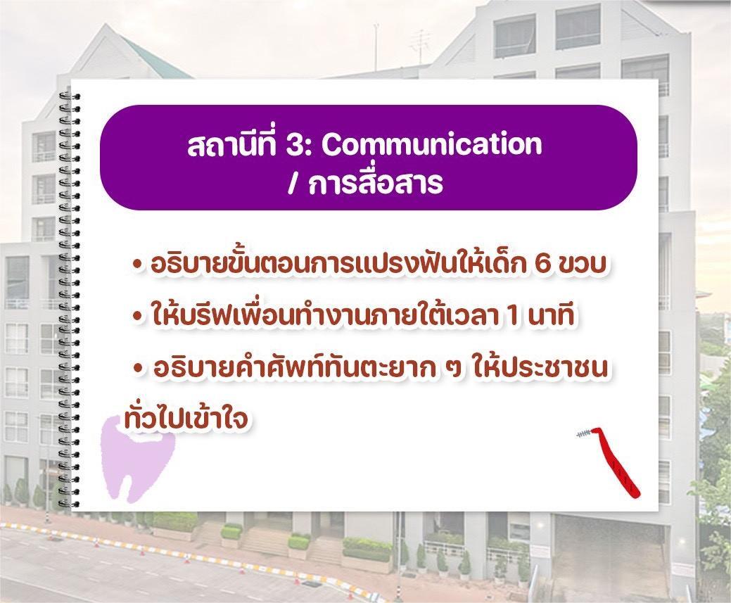 Communication/การสื่อสาร: ฝึกอธิบายเรื่องยากๆ (เช่น ขั้นตอนการแปรงฟัน) ให้เด็กหรือประชาชนทั่วไปเข้าใจ