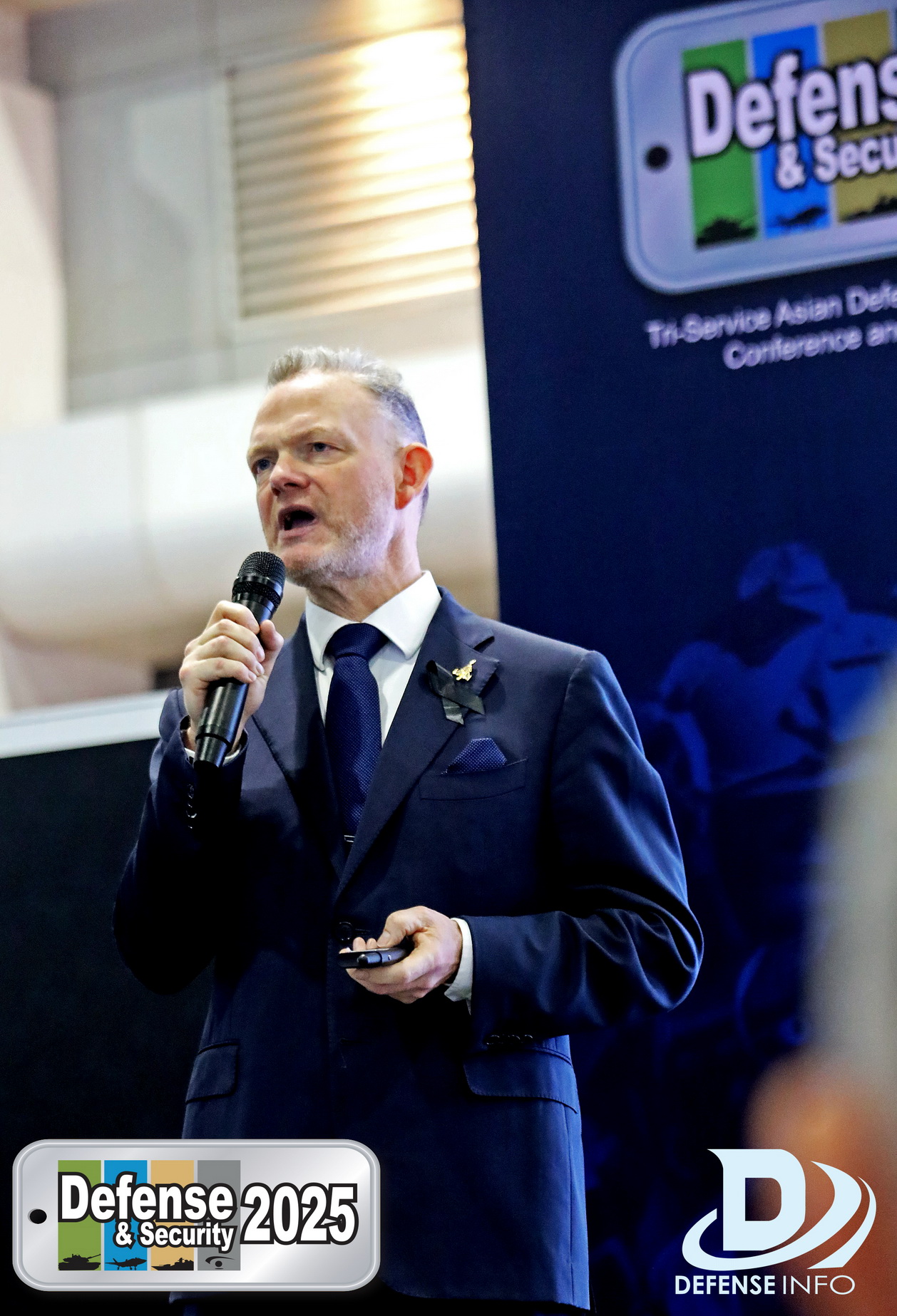 Robert Hewson ผู้อำนวยการด้านสื่อสารองค์กร บริษัทSAAB แห่งสวีเดน ได้บรรยายสรุปความก้าวหน้าและเทคโนโลยีใหม่ของเครื่องบินรบแบบ Gripen EในDefense&Security2025 โดยเน้นยำคุณลักษณะที่ล้ำหน้า และสามารถพัฒนาสมรรถนะในการปฏิบัติงานในการรบทางอากาศยุคใหม่ ที่Gripen E ที่สามารถปรับแต่ง และเข้าถึงได้อย่างรวดเร็ว ด้วยงบประมาณ