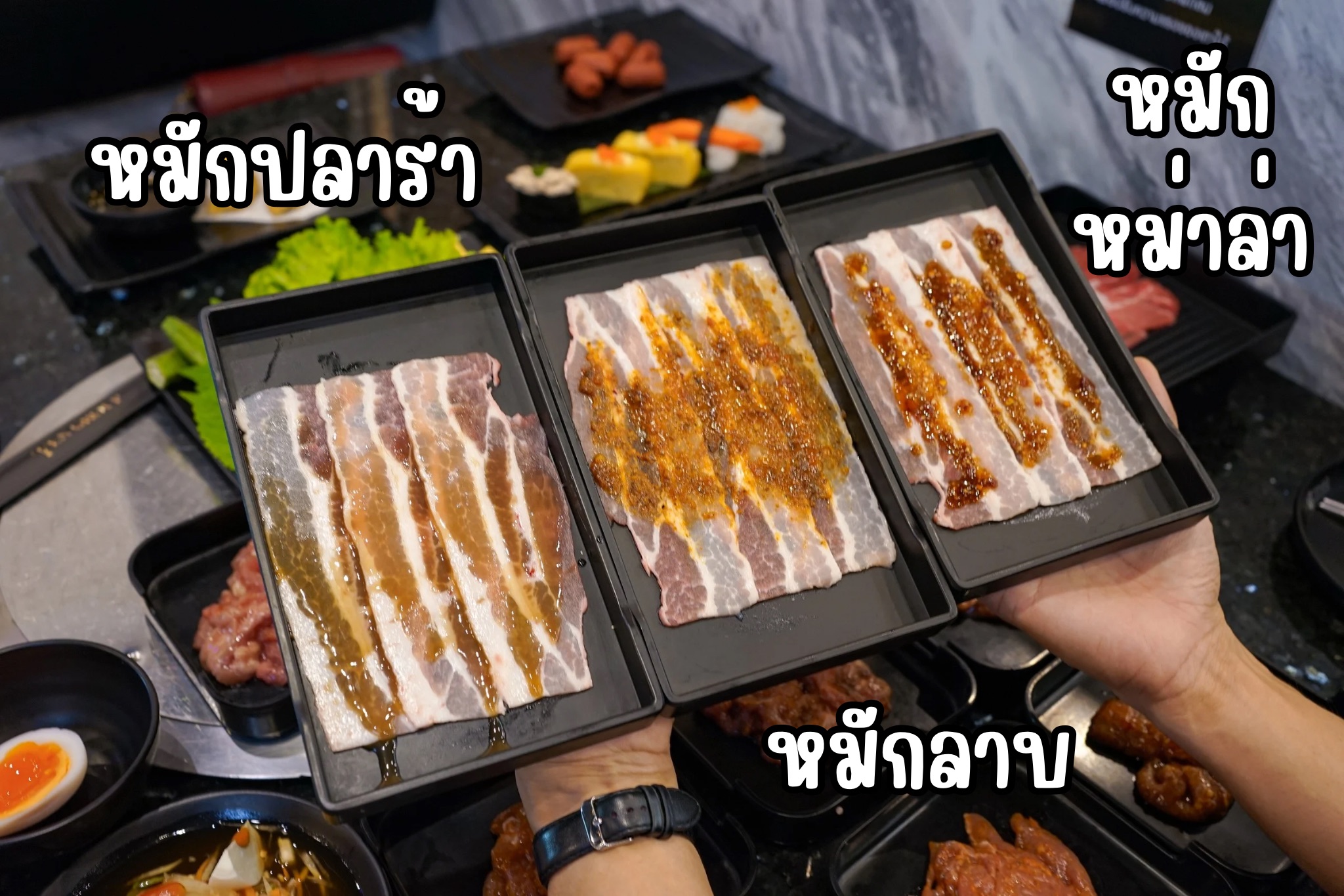 ร้านบุฟเฟต์แบบจัดครบจัดเต็ม อิ่มไม่อั้น ทั้งปิ้งย่าง ชาบู กุ้งดอง แซลมอนดองครบ ย่านรามคำแหง YuuPot Shabu and Grill 당신의 냄비 ร้านเล็กๆ ตกแต