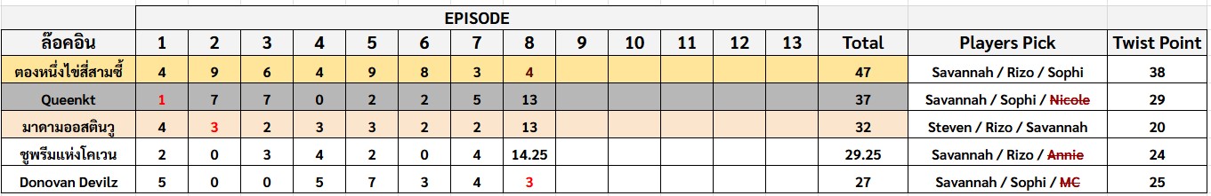 (คุณชูพรีมแห่งโคเวนชนะ Beware Advantage จึงได้คะแนนเฉลี่ยของผู้เล่นทุกคนเพิ่มในตอนนี้ครับ)