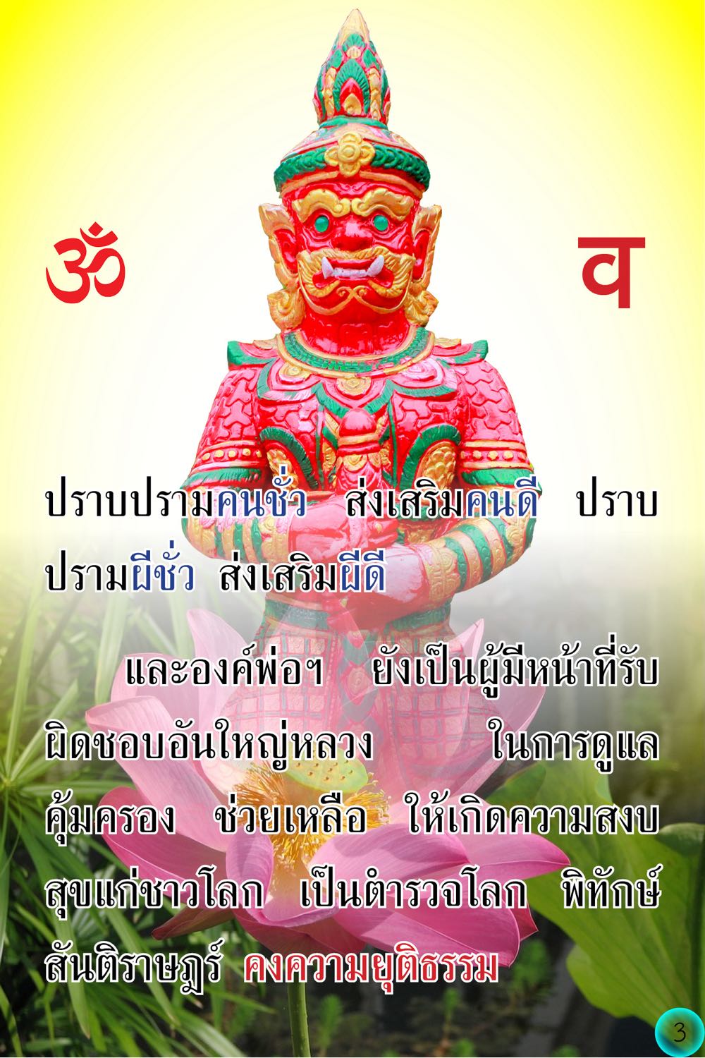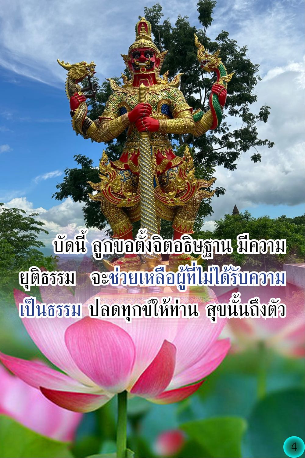 บัดนี้ ลูกขอตั้งจิตอธิษฐาน มีความยุติธรรม จะช่วยเหลือผู้ที่ไม่ได้รับความเป็นธรรม ปลดทุกข์ให้ท่าน สุขนั้นถึงตัว