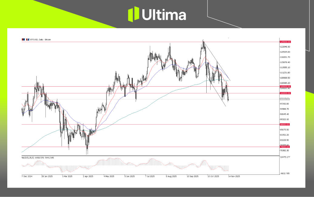 - Bitcoin (BTC): ดิ่งลงต่ำกว่าระดับจิตวิทยาที่ $100,000 ซึ่งเป็นค่าต่ำสุดนับตั้งแต่เดือนพฤษภาคม