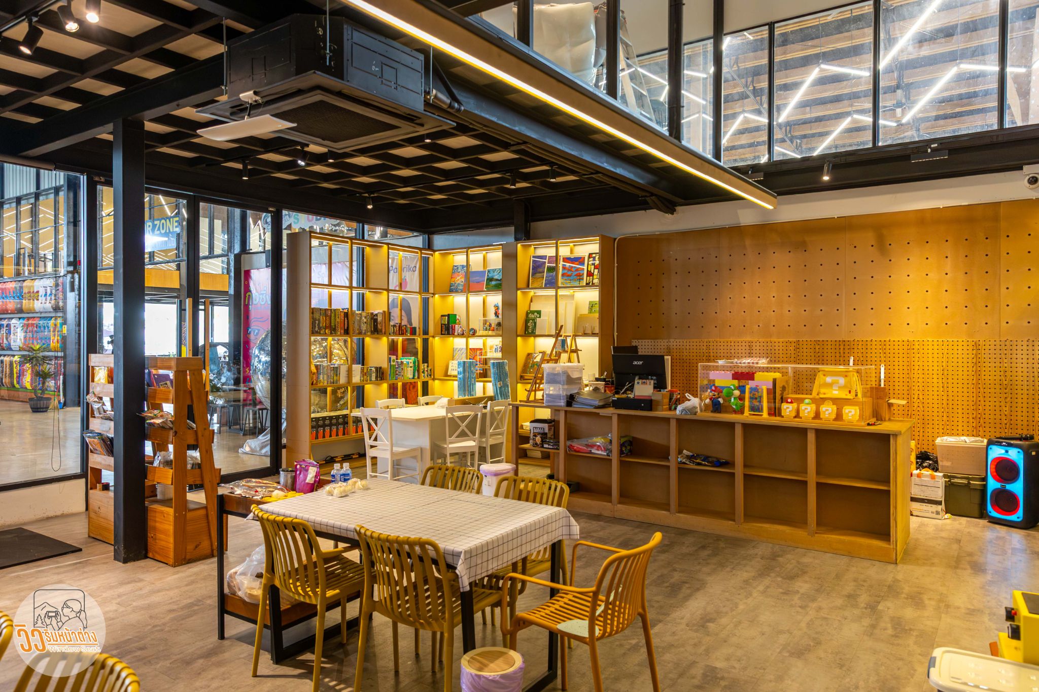ภายในสวยดีครับมีมุมให้นั่งหลายมุม ถ้าชอบความโปร่งโล่งก็ไปนั่งฝั่งติดหน้าต่าง ถ้าอยากได้ความเป็นส่วนตัวหน่อยก็เข้าไปนั่งด้านใน ติดกันมีอีกห้องหนึ่งที่มีกิจกรรมให้ทำหลายอย่างเช่น บอร์ดเกมส์ งานระบายสี แต่บอร์ดเกมส์ในห้องนั้นจะเอามาเล่นในคาเฟ่ไม่ได้นะครับ คนละส่วนกัน (เสียดาย ห้องติดกันแท้ๆ)