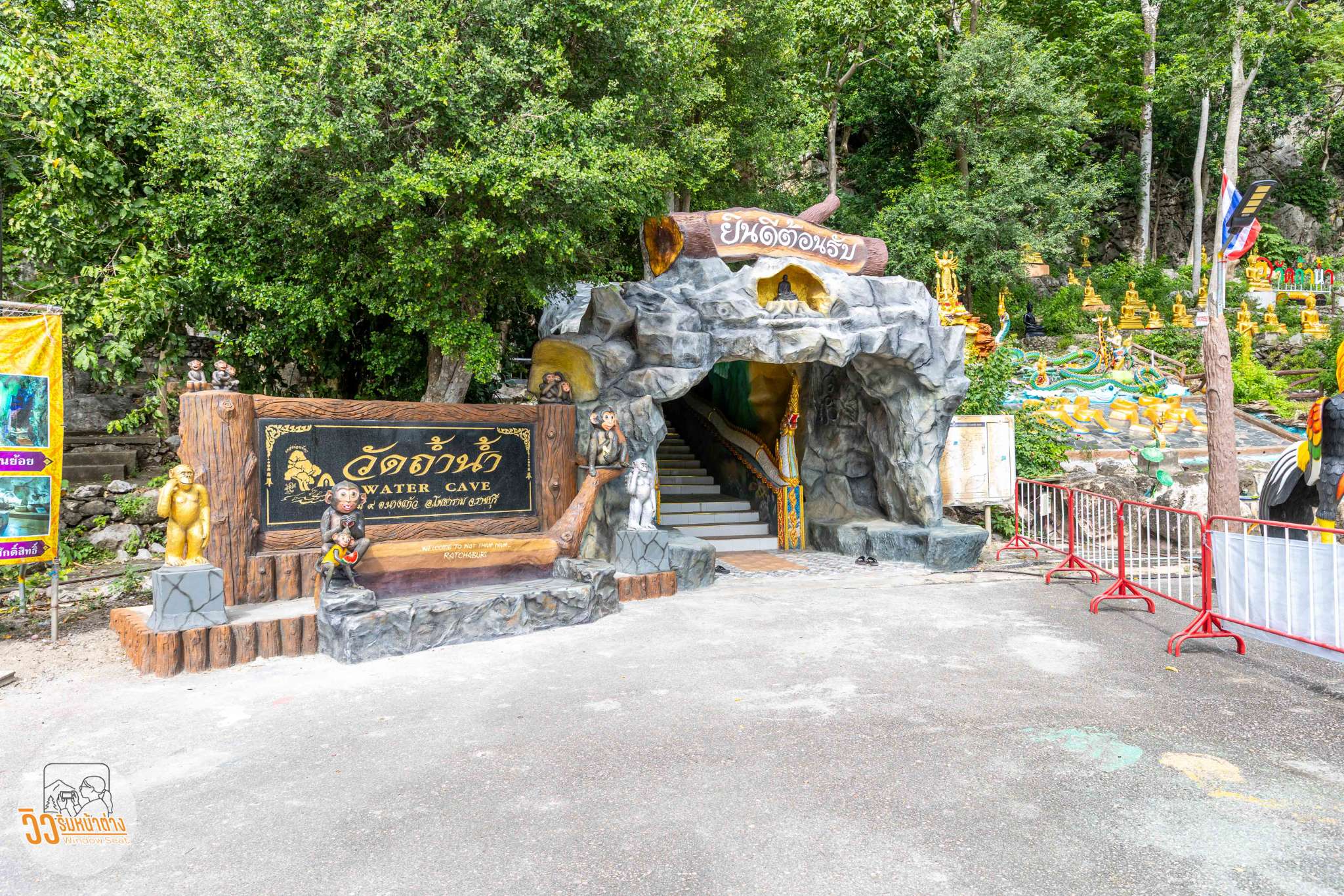 เริ่มต้นการเที่ยว “โพธาราม” ที่วัดถ้ำน้ำ ซึ่งอยู่ห่างจากตัวอำเภอโพธารามไปประมาณ 10 กม. ก่อนเข้าวัดมีน้องลิงมาต้อนรับอยู่ตามถนนอยู่บ้าง ไอ้ผมก็ไม่ค่อยถูกจริตกับลิงแบบนี้อยู่ด้วย ได้แต่ภาวนาว่าในวัดขออย่าให้ลิงเยอะแล้วกัน