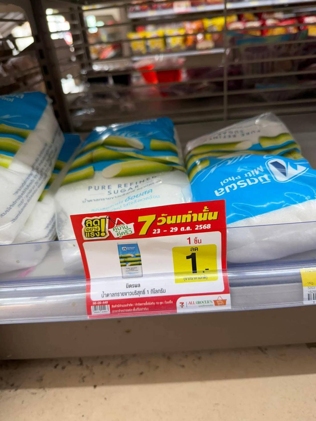 แต่กัมบอลเพิ่งเจอ ช่วงนี้ราคาน้ำตาลขึ้นราคา บางคนเห็นป้ายราคาน้ำตาลทรายแบบนี้ ก็คิดว่าถุงละ 1 บาท แต่ไม่ใช่นะ