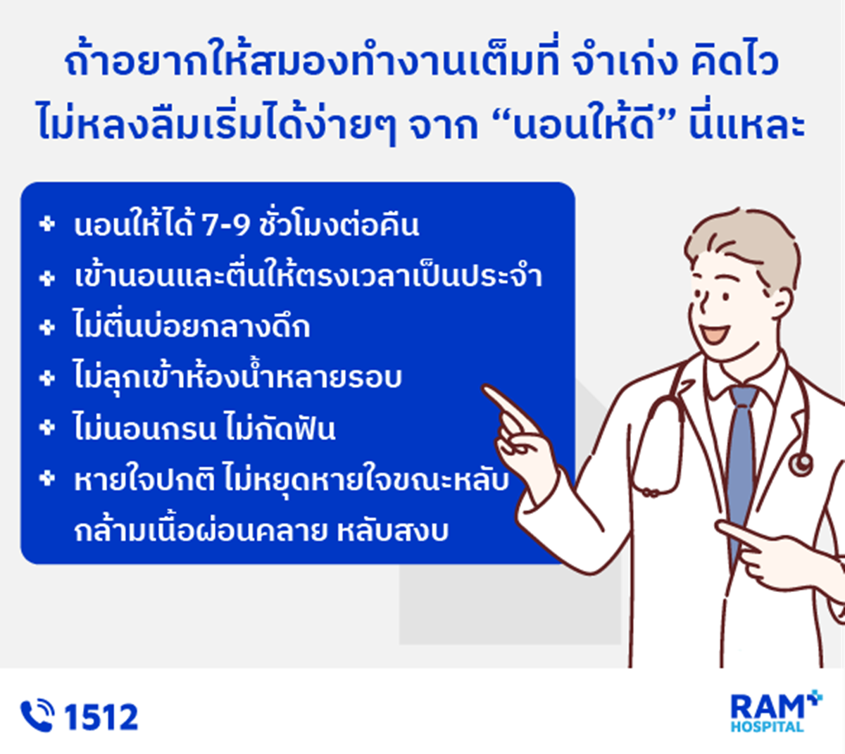 ดังนั้นถ้าอยากให้สมองทำงานเต็มที่ จำเก่ง คิดไว ไม่หลงลืม เริ่มได้ง่ายๆ จาก “นอนให้ดี” นี่แหละค่ะ
