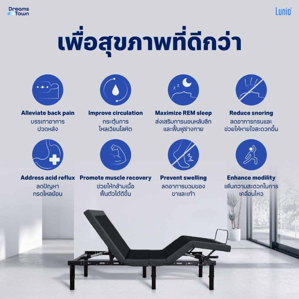 🛏️😴 เปลี่ยนห้องนอนเป็นโฮมแคร์ด้วย เตียงปรับระดับไฟฟ้า Lunio Smart Rise นอนสบายลดกรดไหลย้อน 📱💤