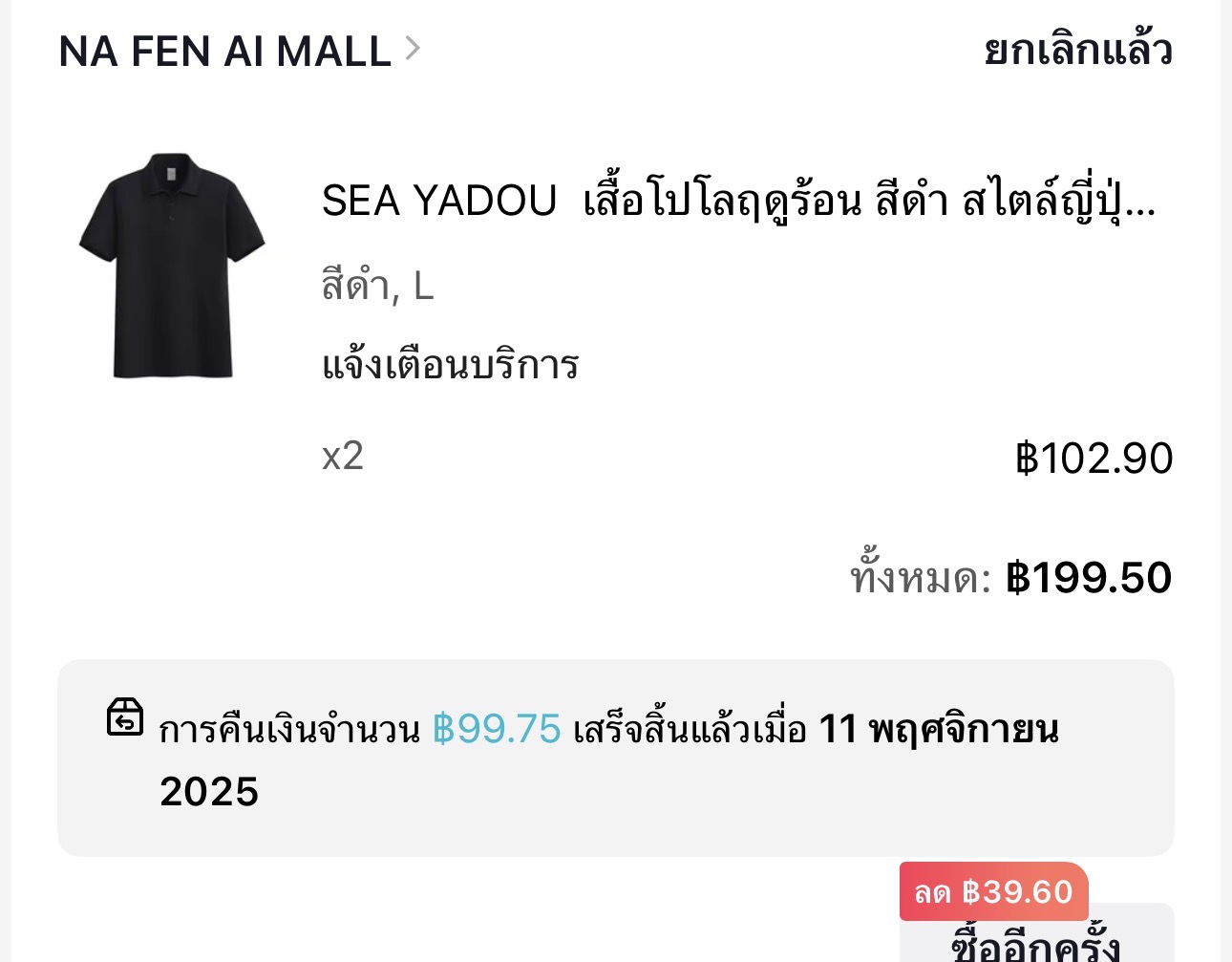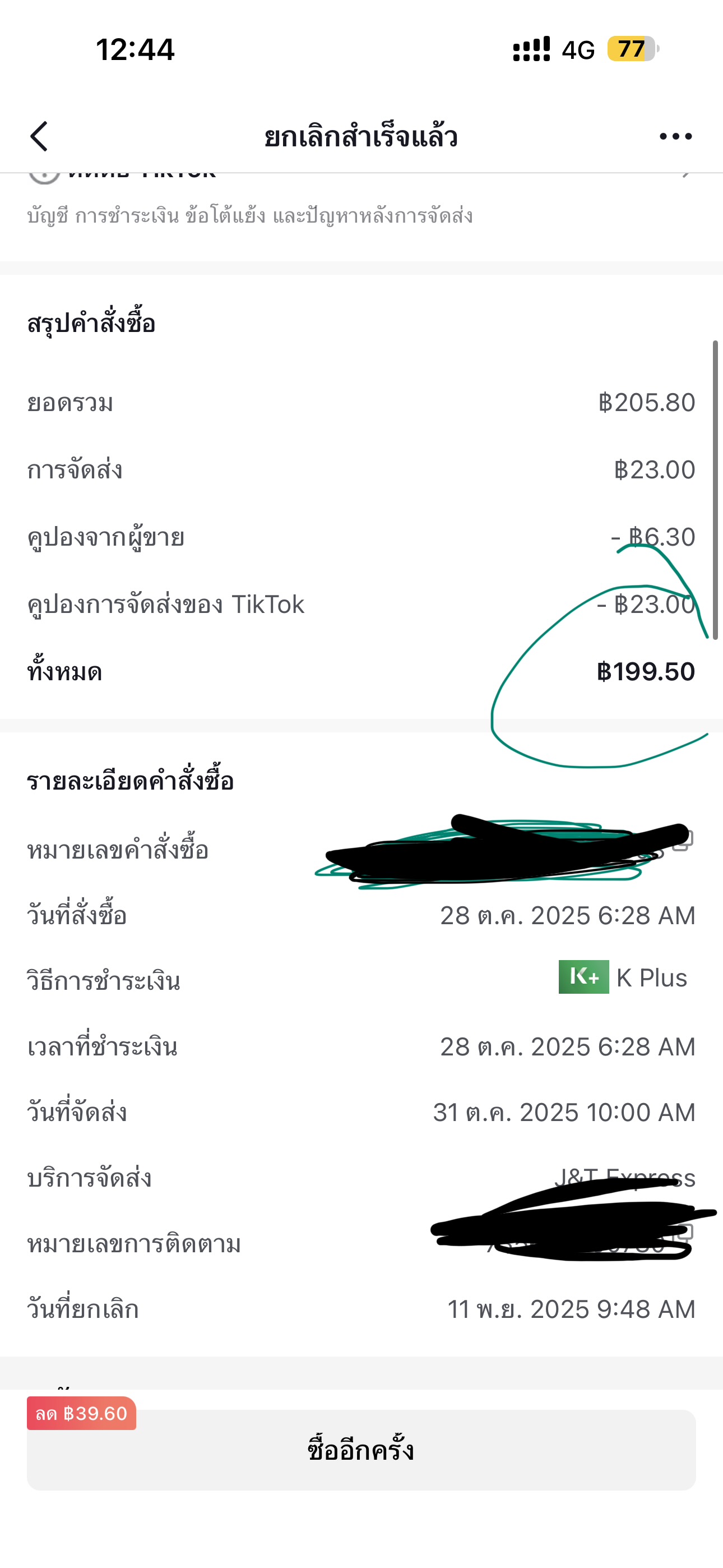 Tiktok ซื้อของจากต่างประเทศแล้วโดนยกเลิก แล้วคืนเงินไม่ครบ แถมไม่ได้ขอฝ