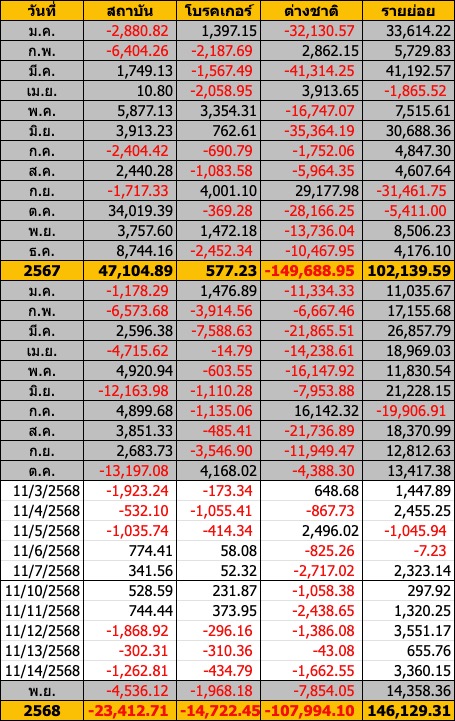 Sinthorn Summary 14/11/2568 : ต่างชาติขายสุทธิ -1,662.55 ลบ.