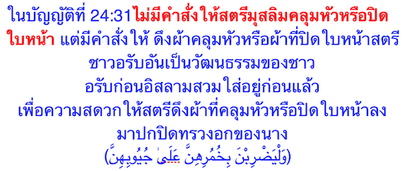 ในบัญญัตินี้ไม่มีคำสั่งให้สตรีมุสลิมคลุมหัว