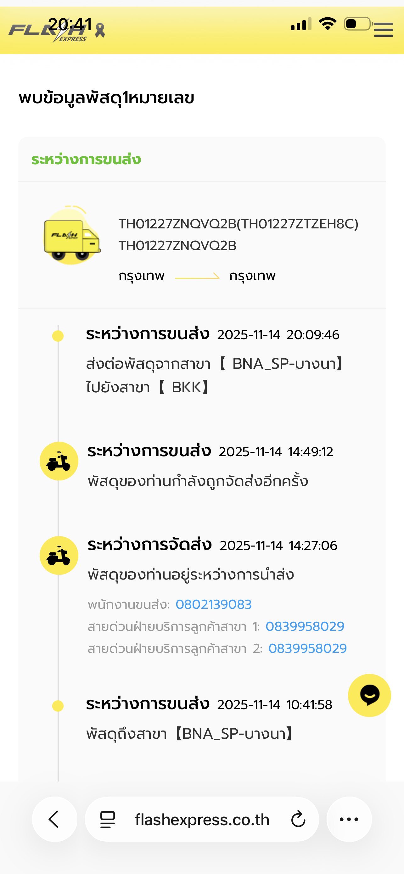 flash express พัสดุถึงสาขา แต่ไม่จัดส่งให้ลูกค้า (2HDY) ติดต่อเบอร์ขนขส่งไม่ได้