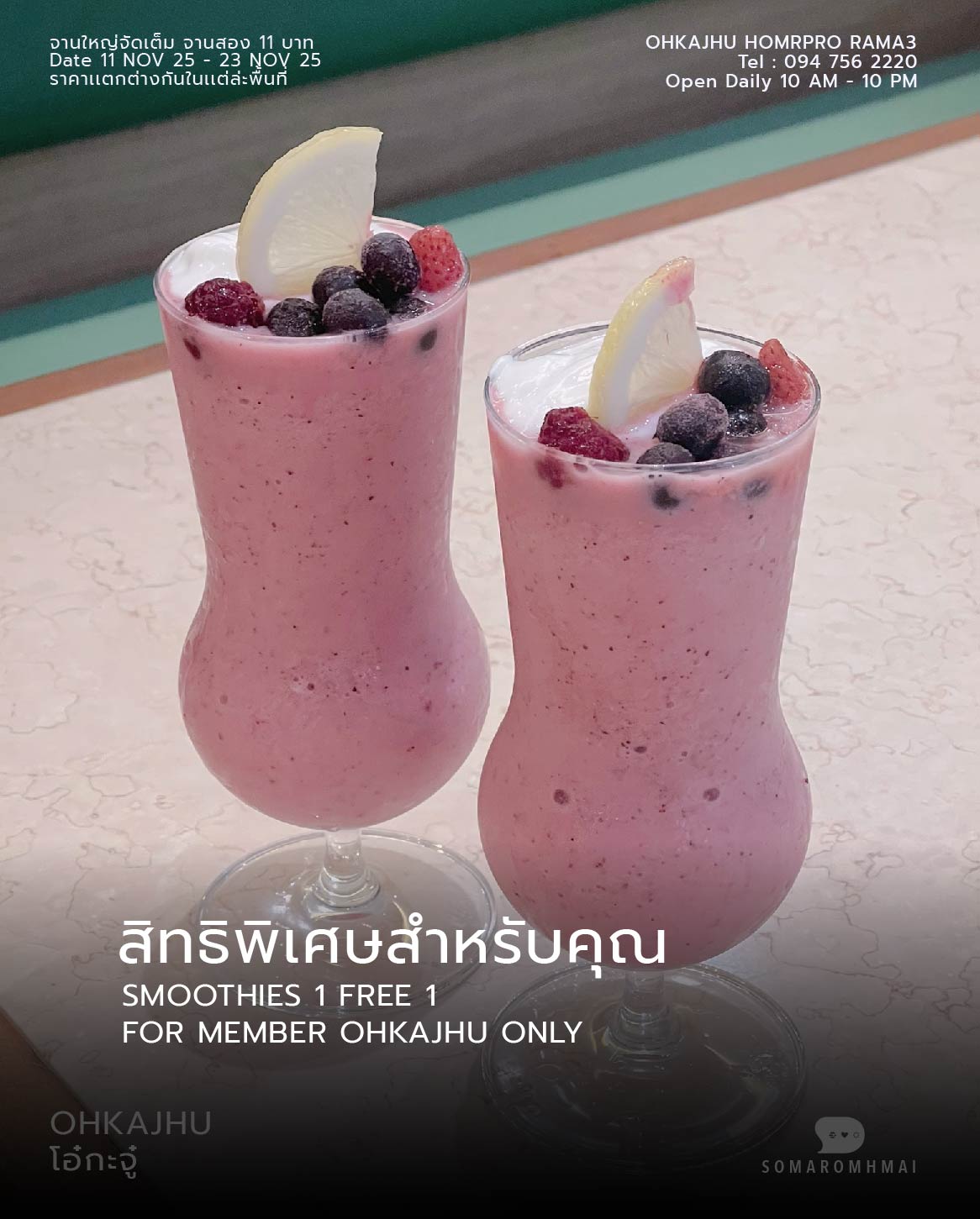 *สมาชิกโอ้กะจู๋ ได้รับสิทธิ์ ซื้อสมุทตี้ได้ 1 เเถม 1 ทุกเดือน เป็นต้น