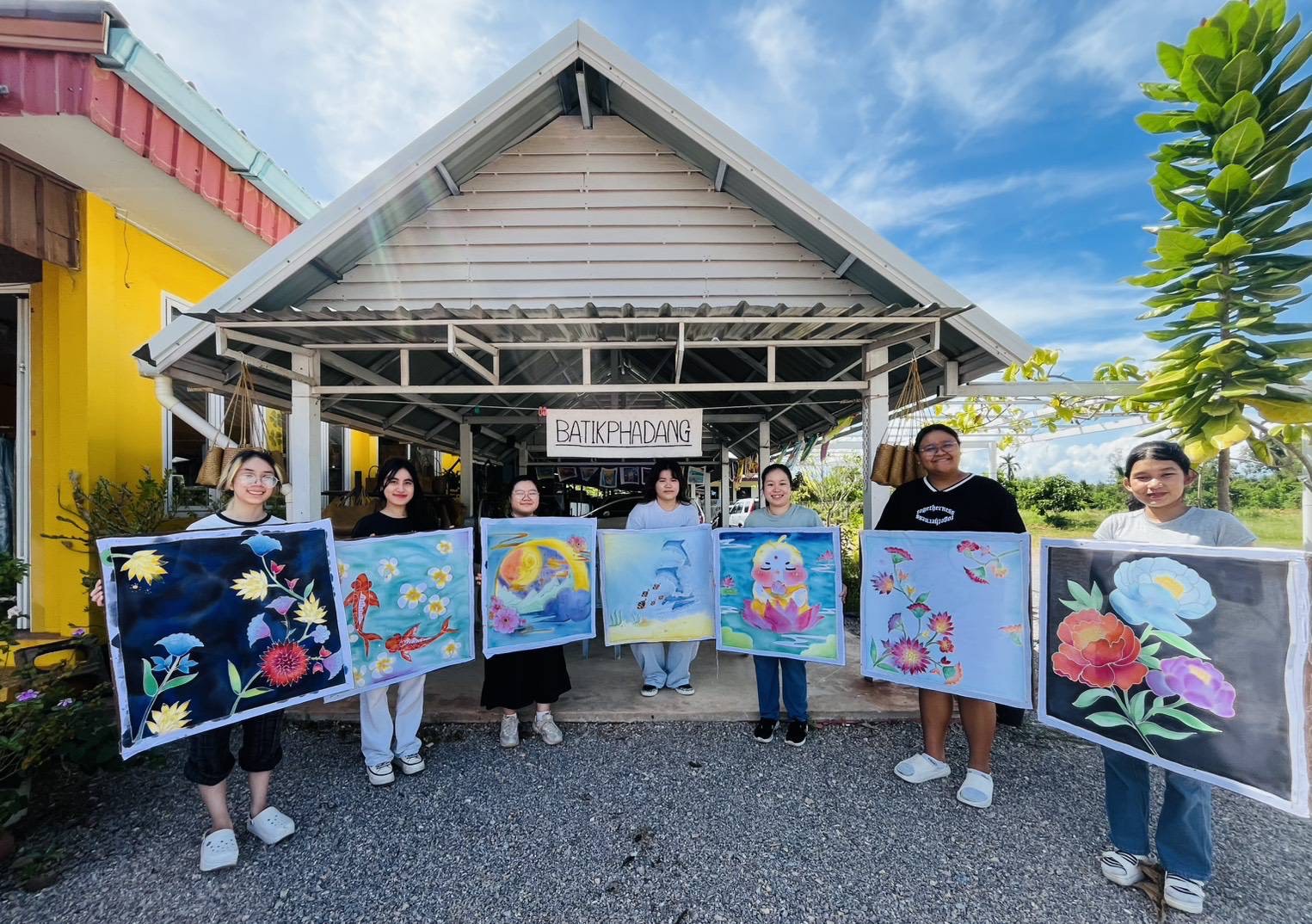 หลังจากได้เติมพลังในตอนเช้า พวกเราก็มุ่งหน้าสู่ ร้านบาติกผาแดงครูอนงค์ ณ หาดทรายรี เพื่อไปทำกิจกรรม Workshop ทำผ้าบาติกกับผู้เชี่ยวชาญ โดยพี่เจ้าของร้านจะอธิบายให้ความรู้ตั้งแต่เรื่องวัสดุผ้า อุปกรณ์ เครื่องมือที่ใช้ในการทำลาย วิธีการลงสี ซึ่งภายในสถานที่จะแบ่งเป็นสองโซน คือ โซนขายเสื้อผ้าบาติกและโซนงานอาร์ต