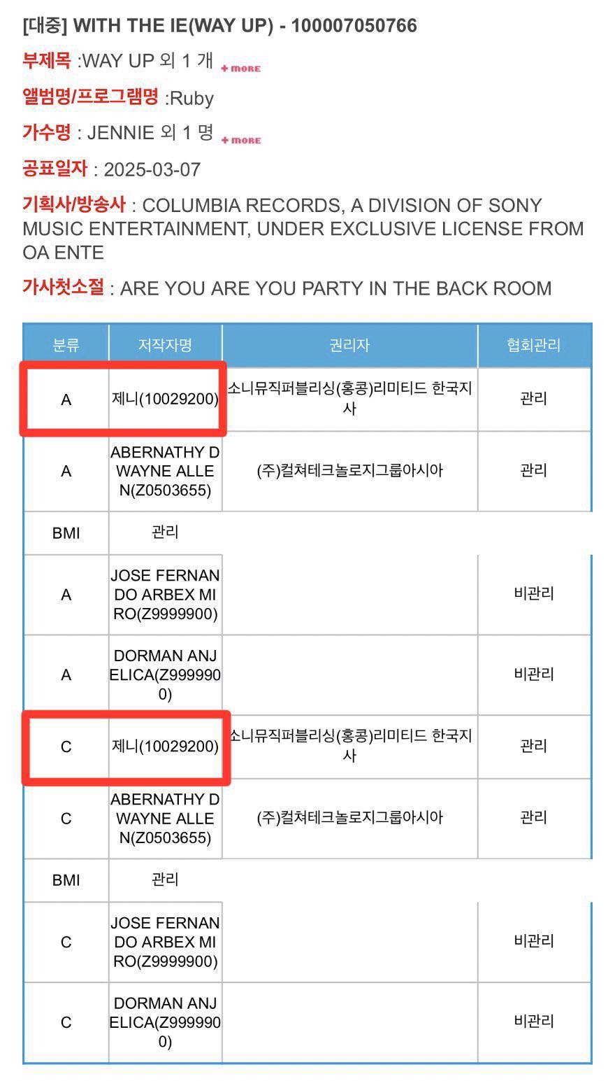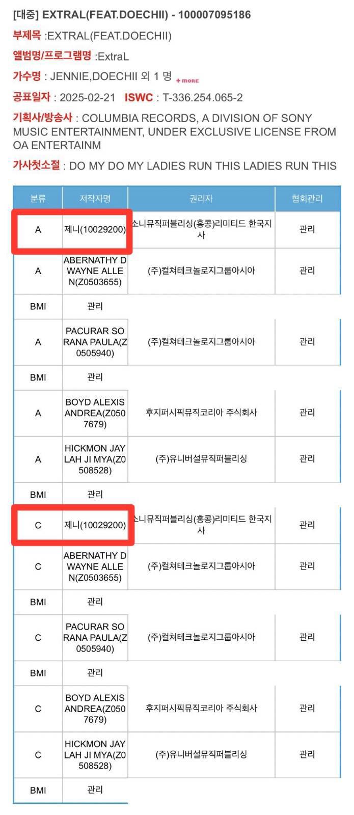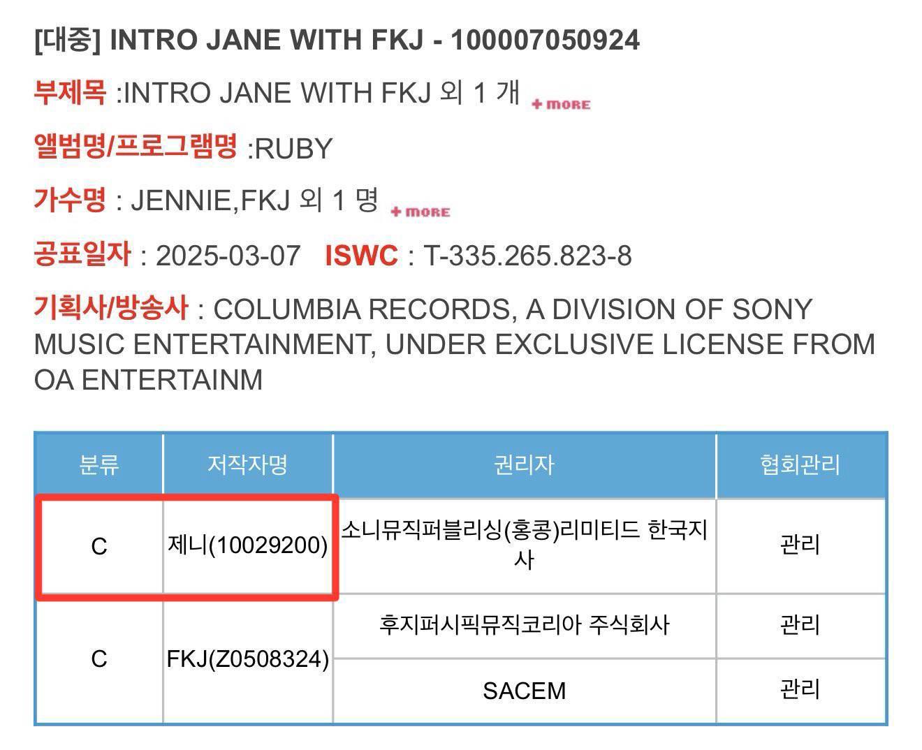 เจนนี่ได้รับการจดทะเบียนอย่างเป็นทางการในฐานะผู้แต่งเพลง (Songwriter) และประพันธ์ทำนองเพลง (Composer) ของเพลง “ExtraL” , “with the IE (way up) และ “Intro: JANE with FKJ” ภายใต้สมาคมลิขสิทธิ์เพลงเกาหลี (KOMCA) เรียบร้อยแล้ว 👏