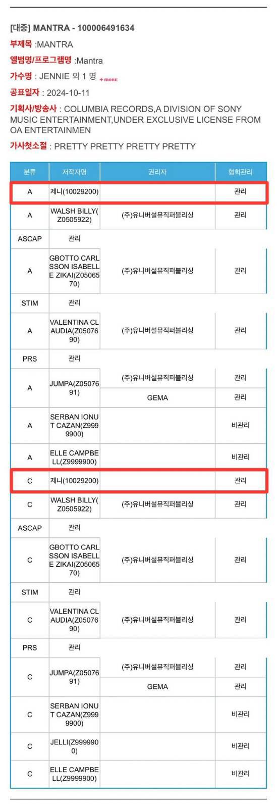 ซึ่งก่อนหน้านี้เพลง Like JENNIE กับ Mantra ของเจนนี่ก็ได้รับการจดทะเบียนอย่างเป็นทางการในฐานะผู้แต่งเพลง (Songwriter) และประพันธ์ทำนองเพลง (Composer) ของเพลงเช่นกัน 💞
