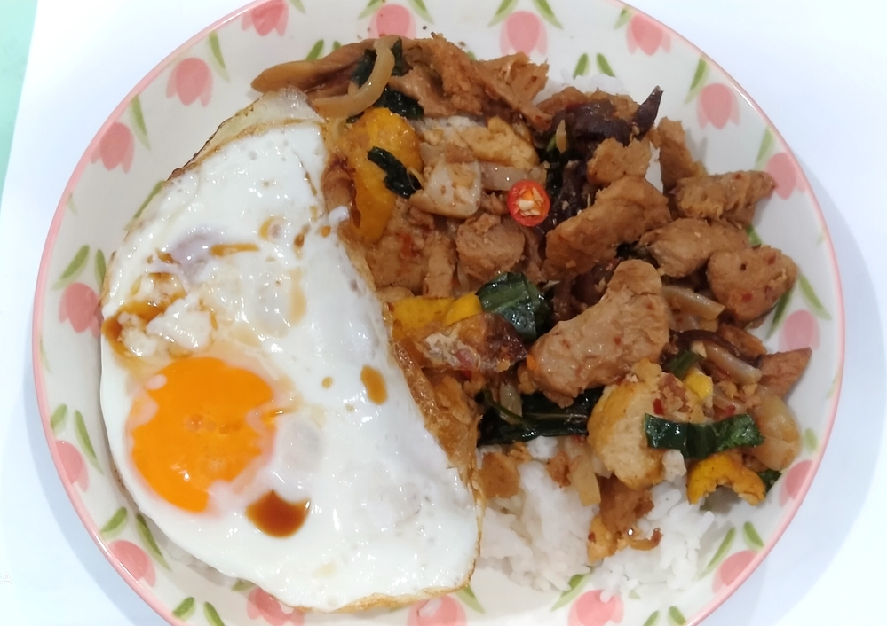 ข้าวยำหมูย่างเจ+ไข่ดาว 🍖🍳