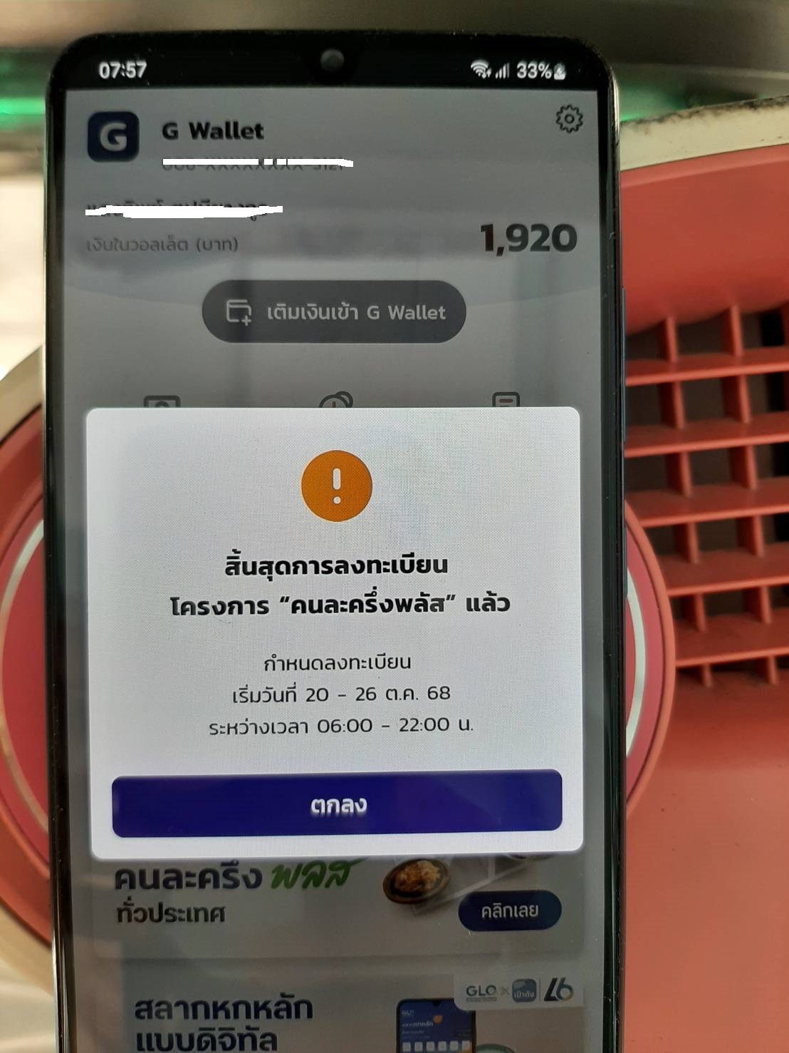 ใช้คนละครึ่งพลัส มาได้ตลอด แต่เมื่อเช้าขึ้นข้อความว่า "สิ้นสุดการลงทะเบียน......" ใครเป็นบ้างคะ