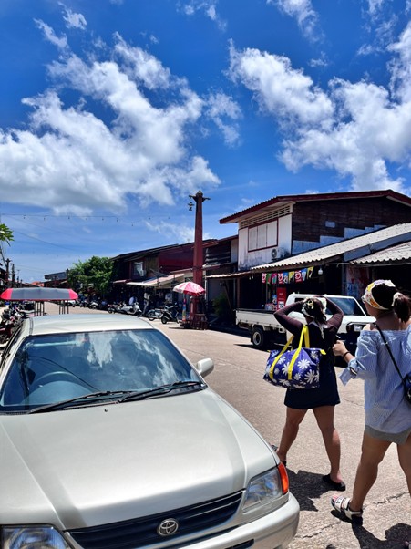 และด้วยความตั้งใจที่อยากซึมซับบรรยากาศของชุมชนเมืองเก่าเกาะลันตา พวกเราจึงเลือกเดินเที่ยวชมสองฝั่งถนนแทนการนั่งรถ ระหว่างทางเต็มไปด้วยร้านค้าท้องถิ่นหลากหลายประเภท ทั้งร้านขายของฝาก เสื้อผ้า สินค้าพื้นเมือง ไปจนถึงร้านอาหารที่ชาวบ้านนำมาจำหน่ายบริเวณหน้าบ้าน ทำให้พวกเราได้สัมผัสวิถีชีวิตของชุมชนอย่างใกล้ชิด