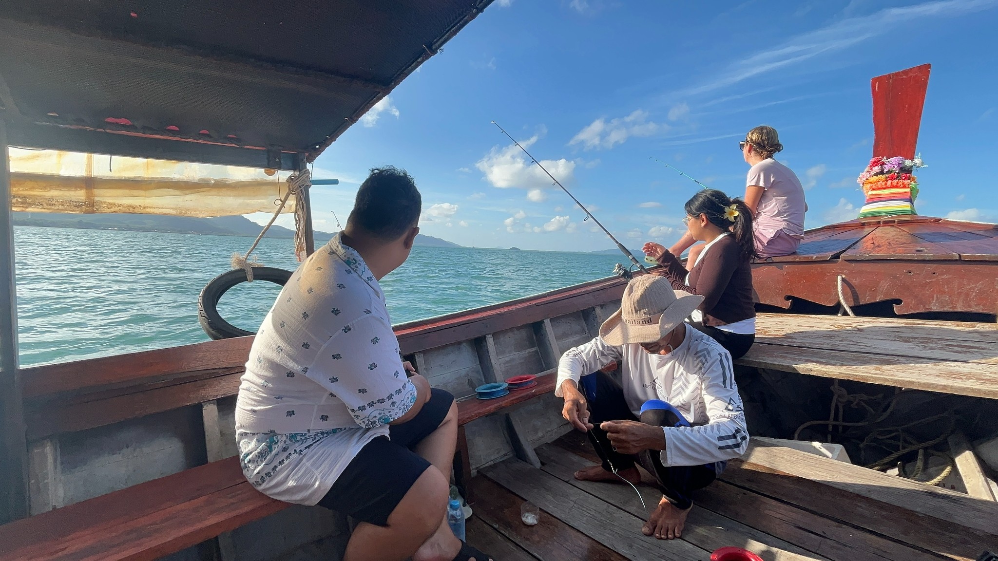 ต่อมาในเวลา 16.00 น. คุณลุงพาพวกเราออกเรือไปตกปลา วันนั้นเราตกปลาได้ทั้งหมดสี่ตัว เนื่องจากเป็นวันน้ำนิ่งจึงไม่ค่อยได้ปลามากนัก