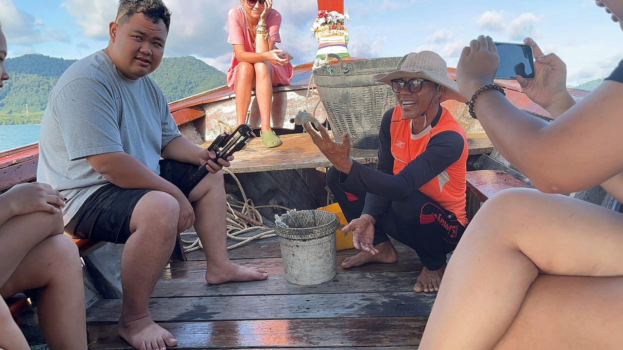 จากนั้นพวกเราเดินทางข้ามไปยังเกาะปอด้วยเรือของคุณลุงเจ้าของโฮมสเตย์ เมื่อถึงที่พัก ทุกคนได้พักผ่อนและรับประทานอาหารกลางวันตามอัธยาศัย หลังจากนั้นจึงแยกย้ายกันพัก