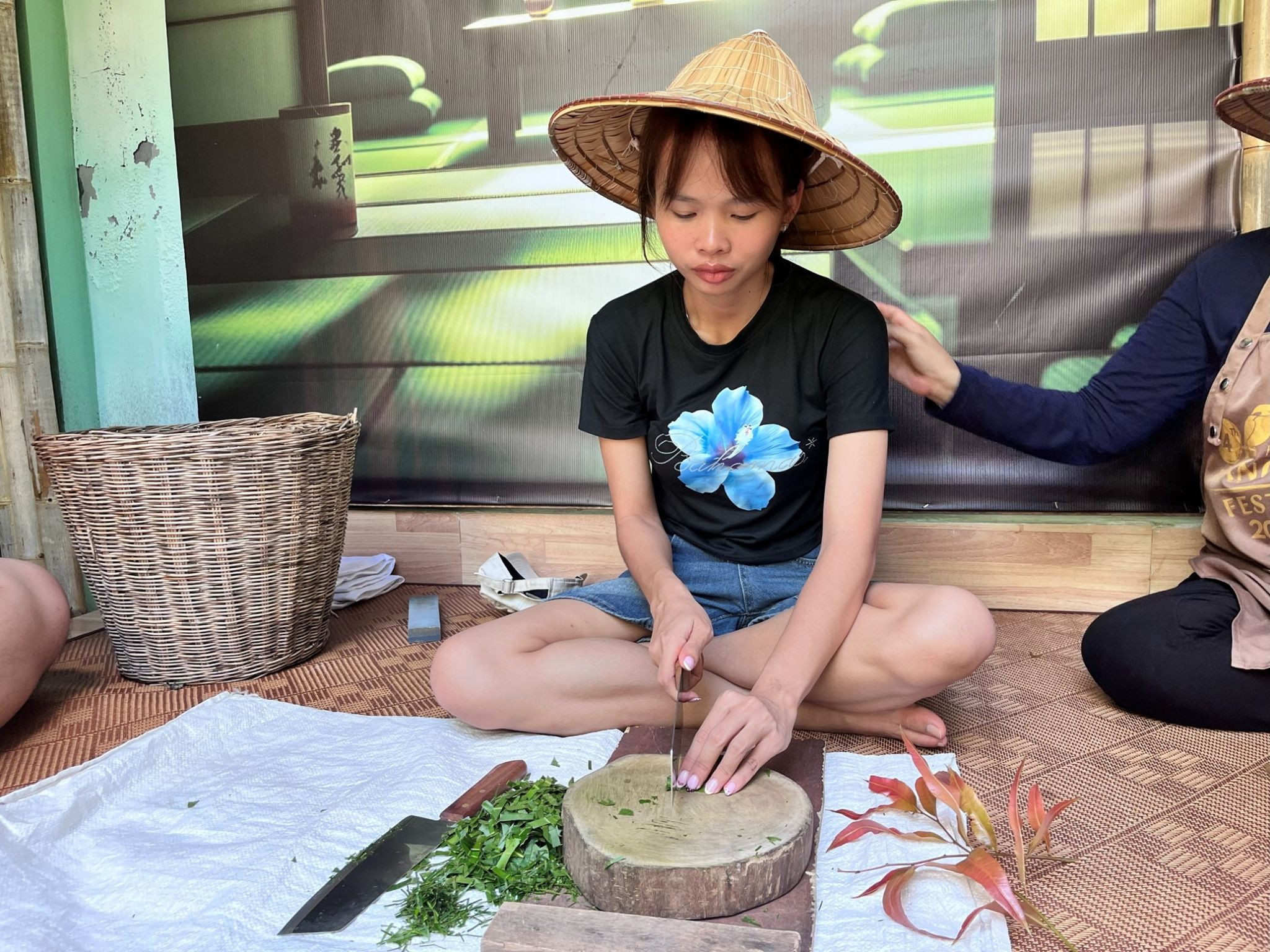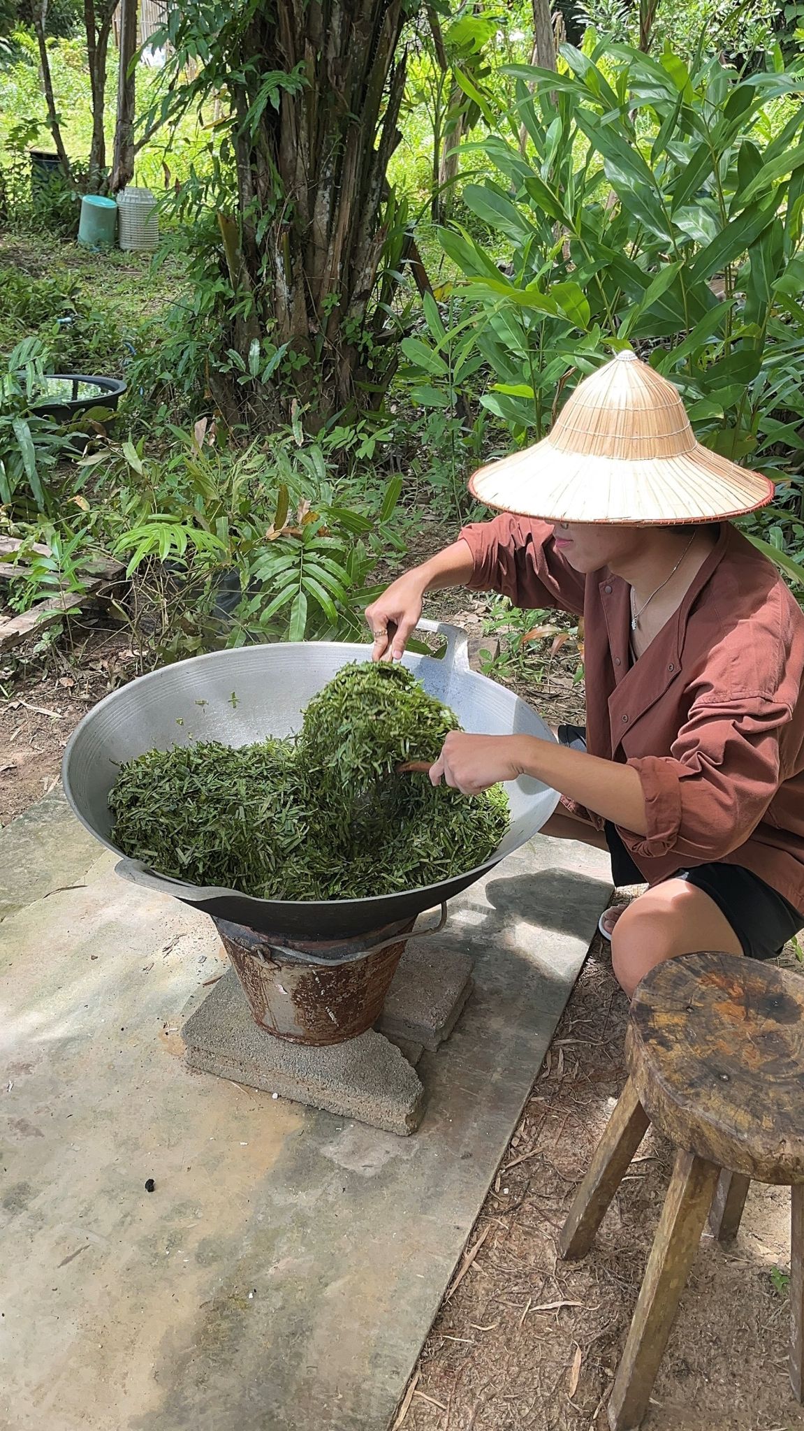 ลองหั่นเตรียมใบชาเพื่อไปคั่ว