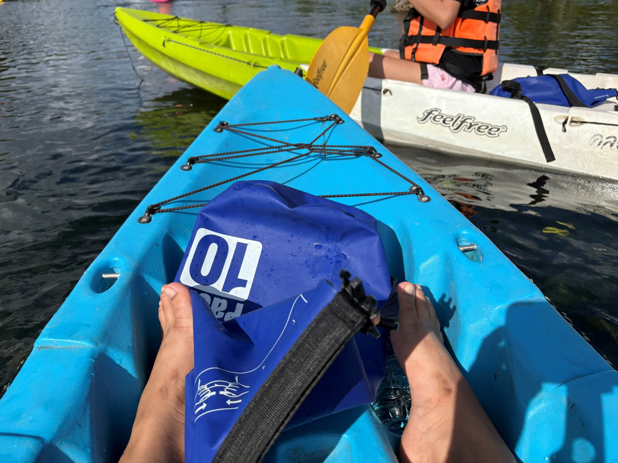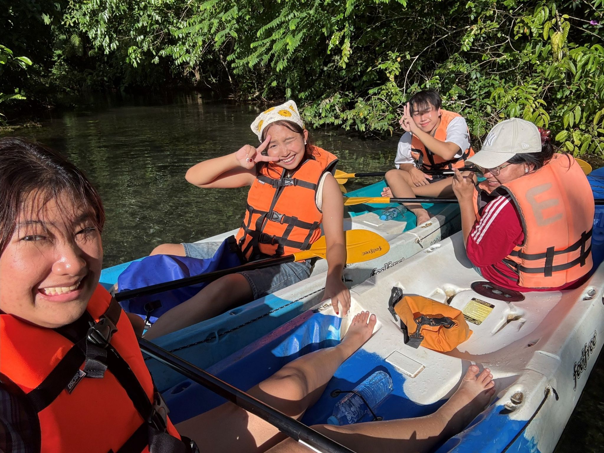 ช่วงแรกของการพายจะรู้สึกค่อนข้างร้อน เพราะแสงแดดแรงในช่วงเที่ยงและต้องออกแรงพายอยู่ตลอด แต่เมื่อพายลึกเข้าไปถึงแนวป่าที่มุ่งหน้าไปยัง บ่อน้ำผุด อากาศจะเริ่มเย็นลงอย่างชัดเจน ต้นไม้สูงใหญ่เรียงรายรอบคลองช่วยบังแสงแดดจนกลายเป็นร่มเงาธรรมชาติ บรรยากาศเงียบสงบ มีเพียงเสียงไม้พายกระทบผืนน้ำใสที่เย็นสดชื่นตลอดทาง