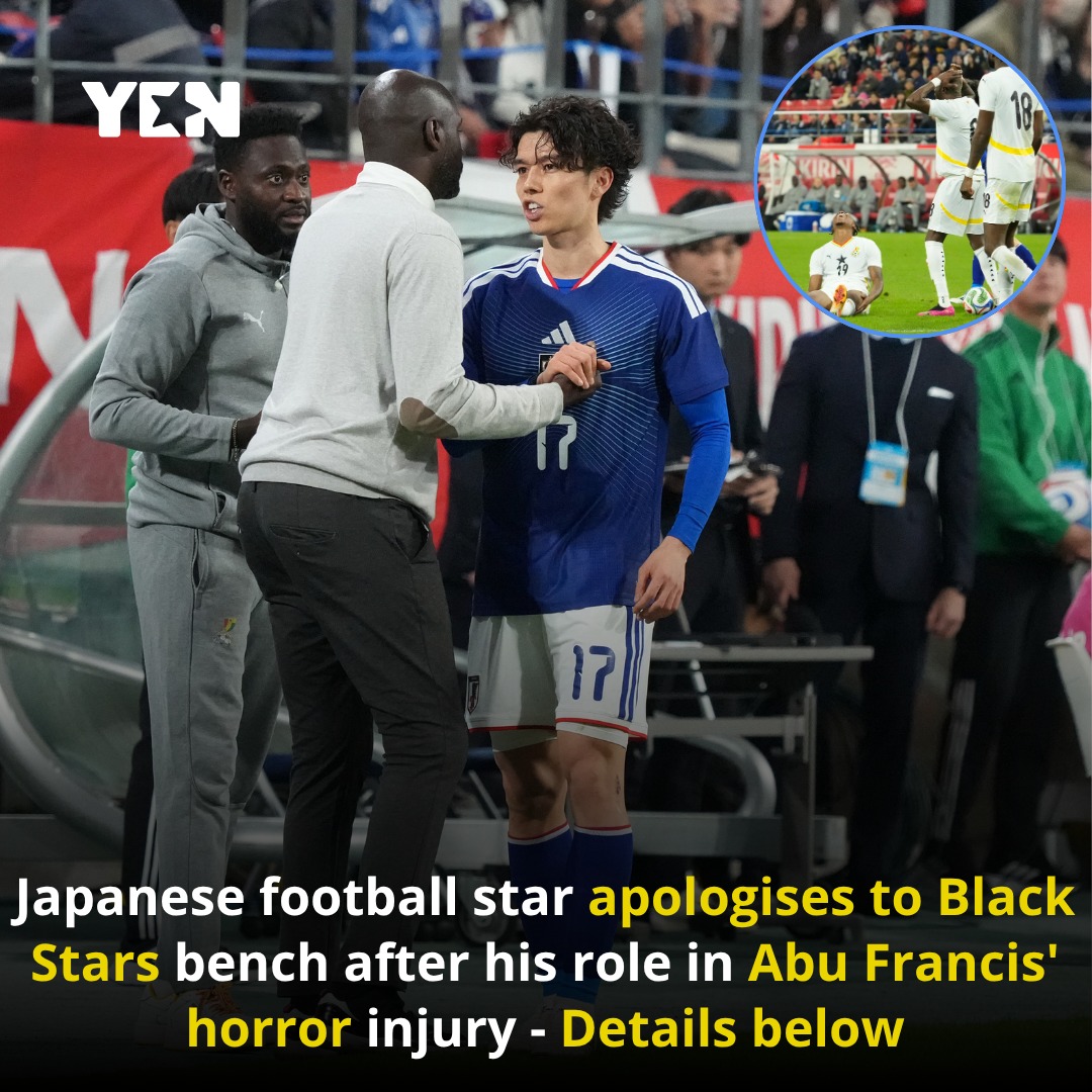 ทันทีที่ “อาโอะ ทานากะ” ถูกเปลี่ยนตัวออก เจ้าตัวเดินตรงไปที่ม้านั่งสำรองของผู้เล่นกาน่าเพื่อขอโทษโดยตรงต่อกุนซืออ็อดโด้ทันที
