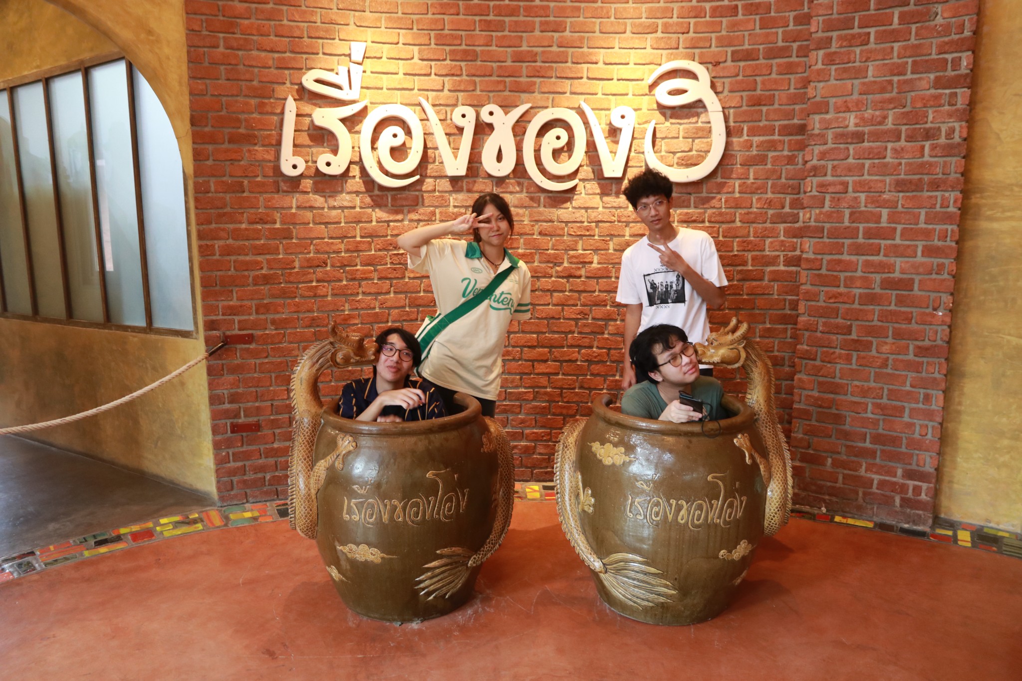 เรายังไม่จบกันกับเรื่องของโอ่ง เพราะจุดหมายต่อไปก็คือ เรื่องของโอ่ง พิพิธภัณฑ์เกี่ยวกับโอ่งมังกรของเด่นแห่งจังหวัดราชบุรี ก่อนเข้าชมจะมี Welcome drink เป็นน้ำผสมอุทัยทิพย์ให้ดื่มสดชื่นคลายร้อนกันก่อน เมื่อพร้อมแล้ว ก้าวแรกที่เดินเข้าไปเราก็จะตื่นตากับจุด Check In โอ่งมังกรอันใหญ่
