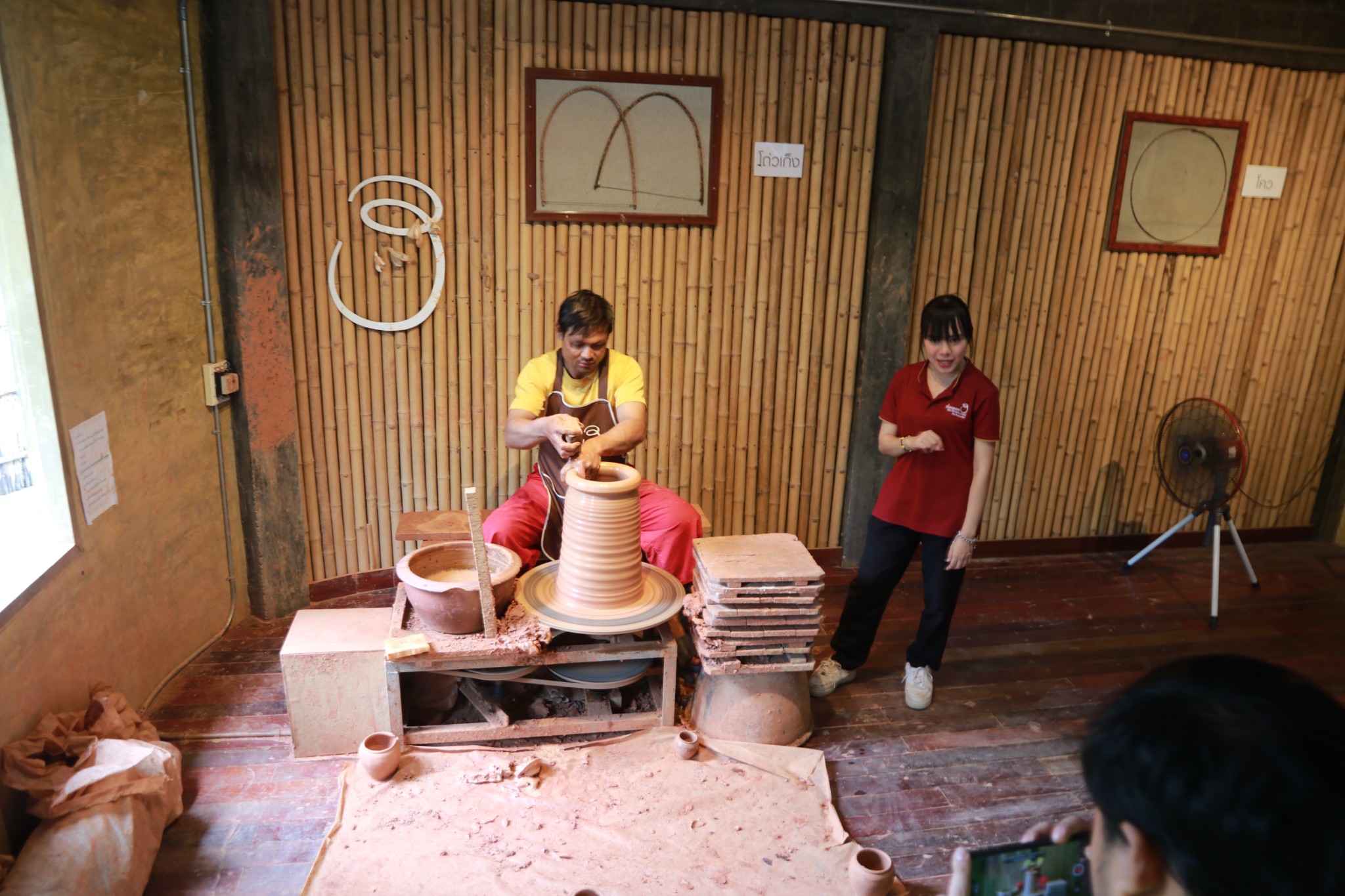 จากนั้นเมื่อเดินชมต่อก็จะได้ความรู้มากมายเกี่ยวกับโอ่งมังกรราชบุรี ทั้งประวัติศาสตร์ของโอ่งหลากหลายแบบที่มีต้นแบบจีน ไปจนที่เป็นภูมิปัญญาแบบไทย ๆ ไฮไลท์สำคัญเลยก็คือการทำโอ่งให้ดูกันตั้งแต่เริ่มต้นแบบใกล้ชิด สิ่งที่น่าทึ่งคือพี่ช่างใช้เวลาปั้นโอ่งแป๊บเดียวเท่านั้น