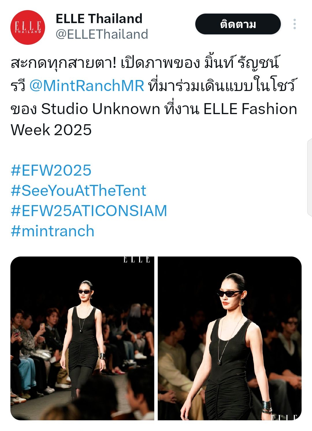 🤩 สะกดทุกสายตา! 😎 "มิ้นท์ รัญชน์รวี" ร่วมเดินแบบ ELLE Fashion Week 2025