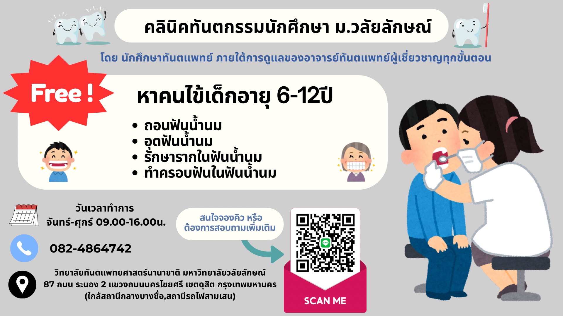 ประกาศหาคนไข้เด็กอายุ6-12ปี ทำฟันฟรีไม่มีค่าใช้จ่าย