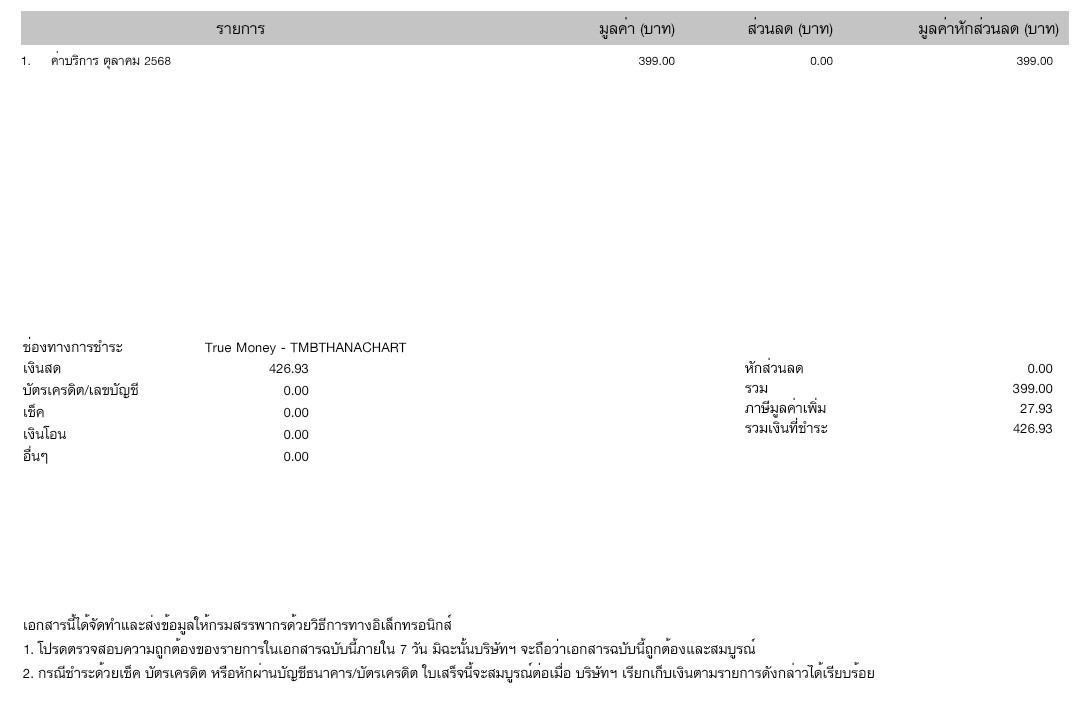 ส่วนอันนี้คือบิลค่าใช้จ่ายรายเดือนหลังที่2