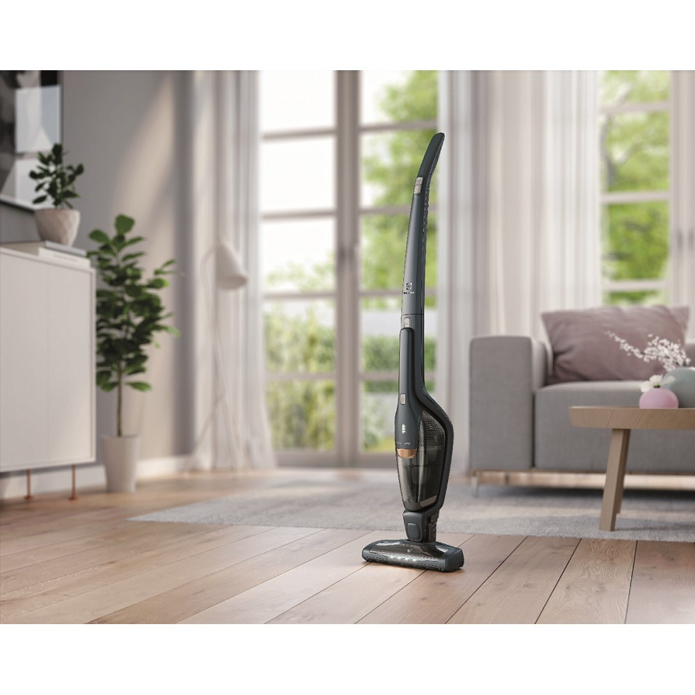 สำหรับใครที่อยากลดเวลาทำความสะอาดบ้านแต่ยังให้พื้นสะอาดเอี่ยม การอัปเกรดมาใช้ เครื่องดูดฝุ่น Electrolux 2 in 1 เป็นตัวช่วยถือว่าตอบโจทย์ เพราะเป็นเครื่องดูดฝุ่นแบบด้ามจับไร้สายที่ใช้แบตเตอรี่ Li-ion 18V ทำงานต่อเนื่องได้ราว 35 นาที ดูดได้ทั้งพื้นแข็งและพรม พร้อมหัวดูดแบบมือถือถอดออกไปจัดการโซฟา โต๊ะ และมุมแคบได้สะดวก 🧹
